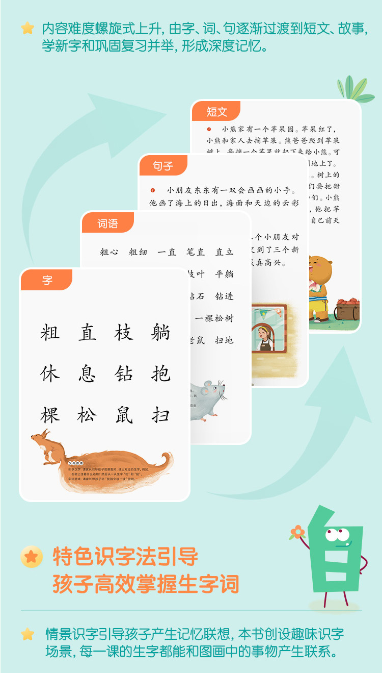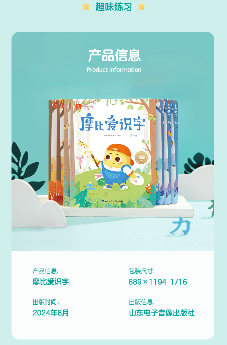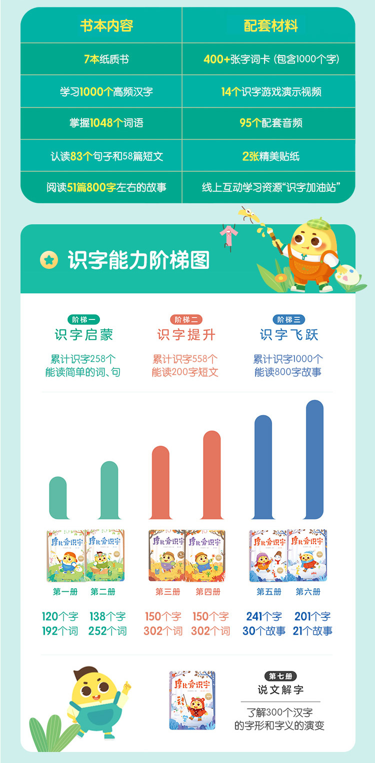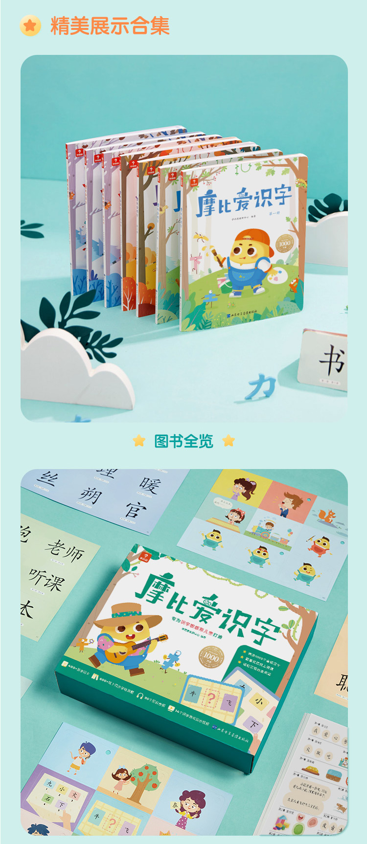 【摩比爱识字】1000个汉字全方位启蒙 学前识字启蒙神器 3-6岁 共7册 赠卡片贴纸+视频-FX