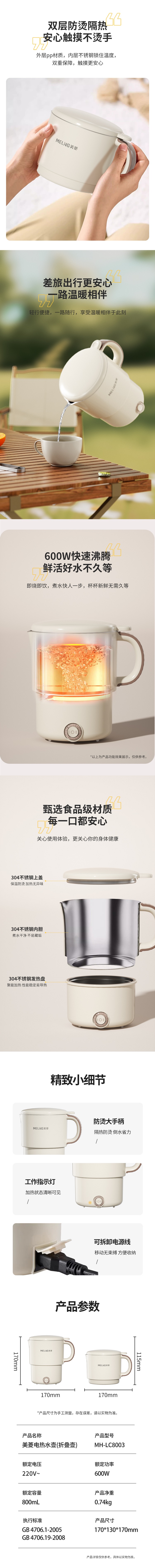 美菱 电热水壶折叠壶 MH-LC8003