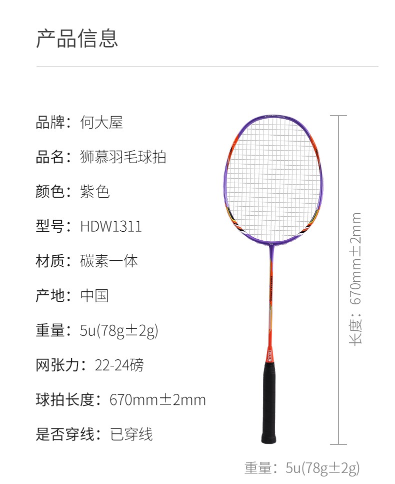 何大屋(Hodtown)羽毛球拍 狮慕羽毛球拍HDW1311