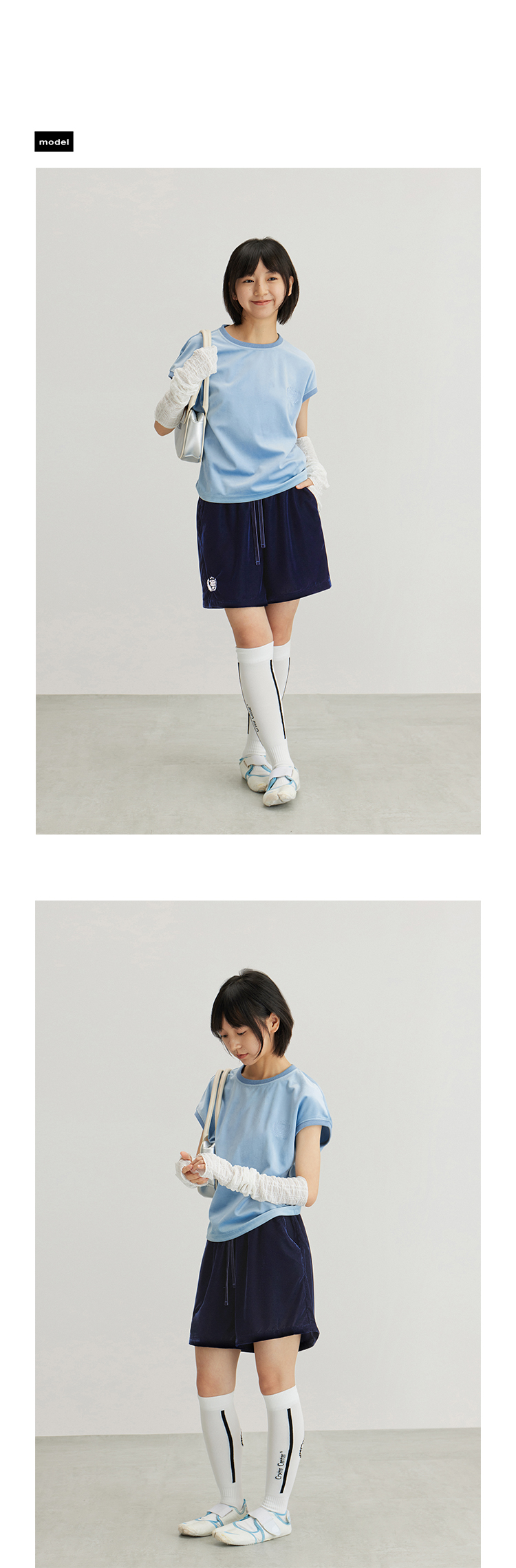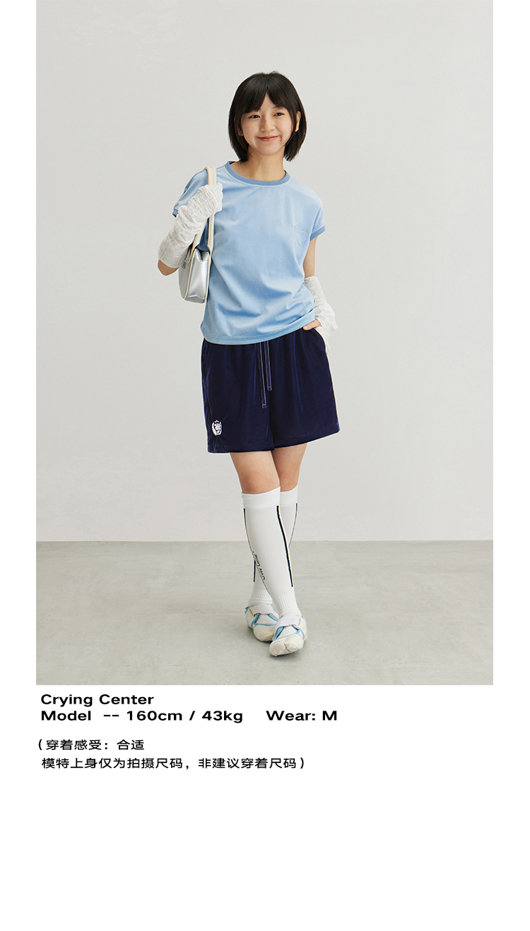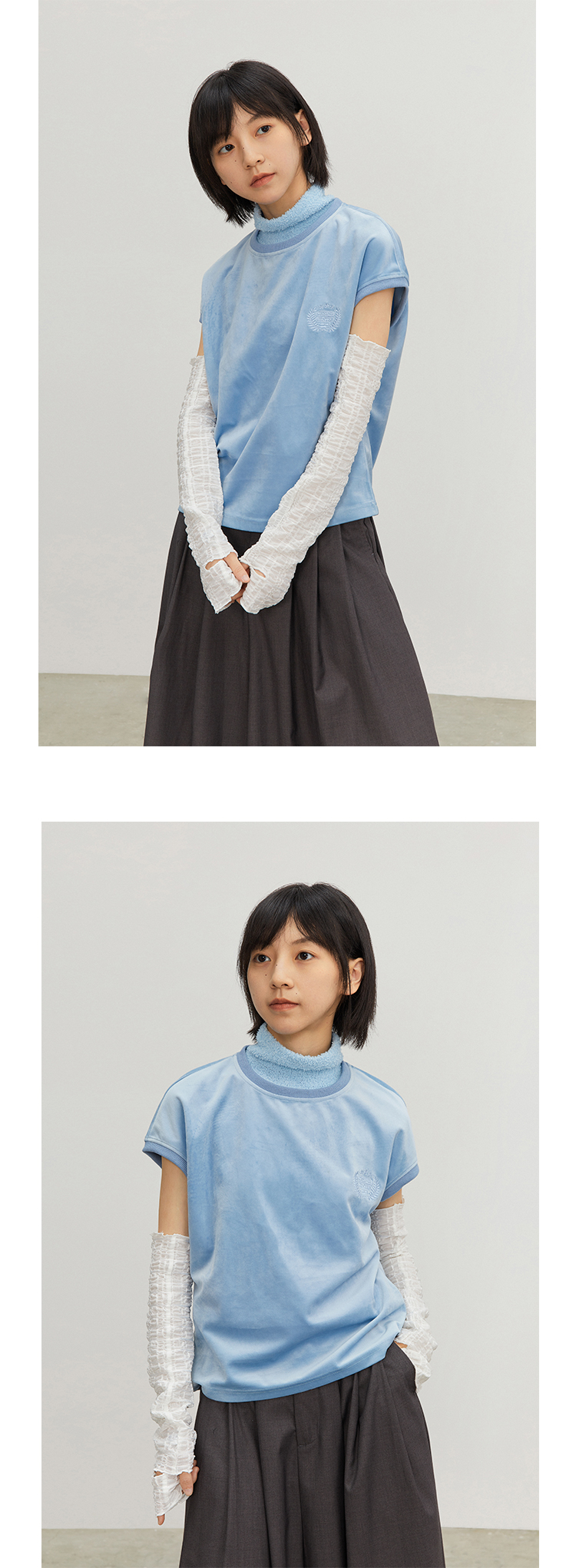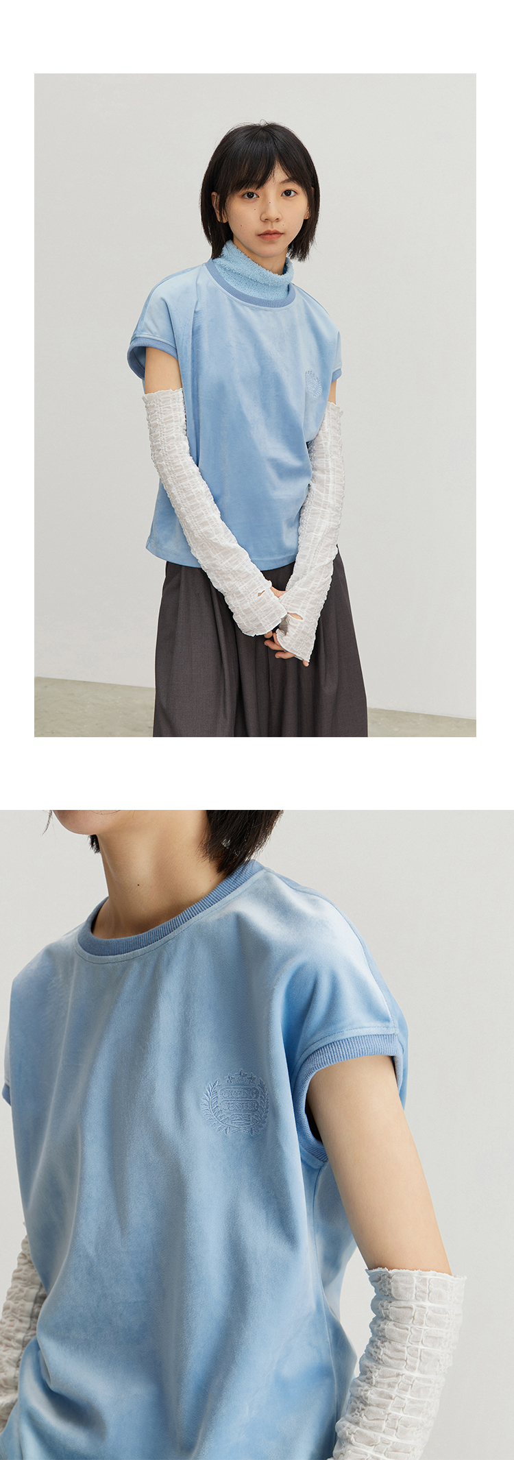 CryingCenter 丝绒法式袖合身正肩泪水蓝刺绣短袖
