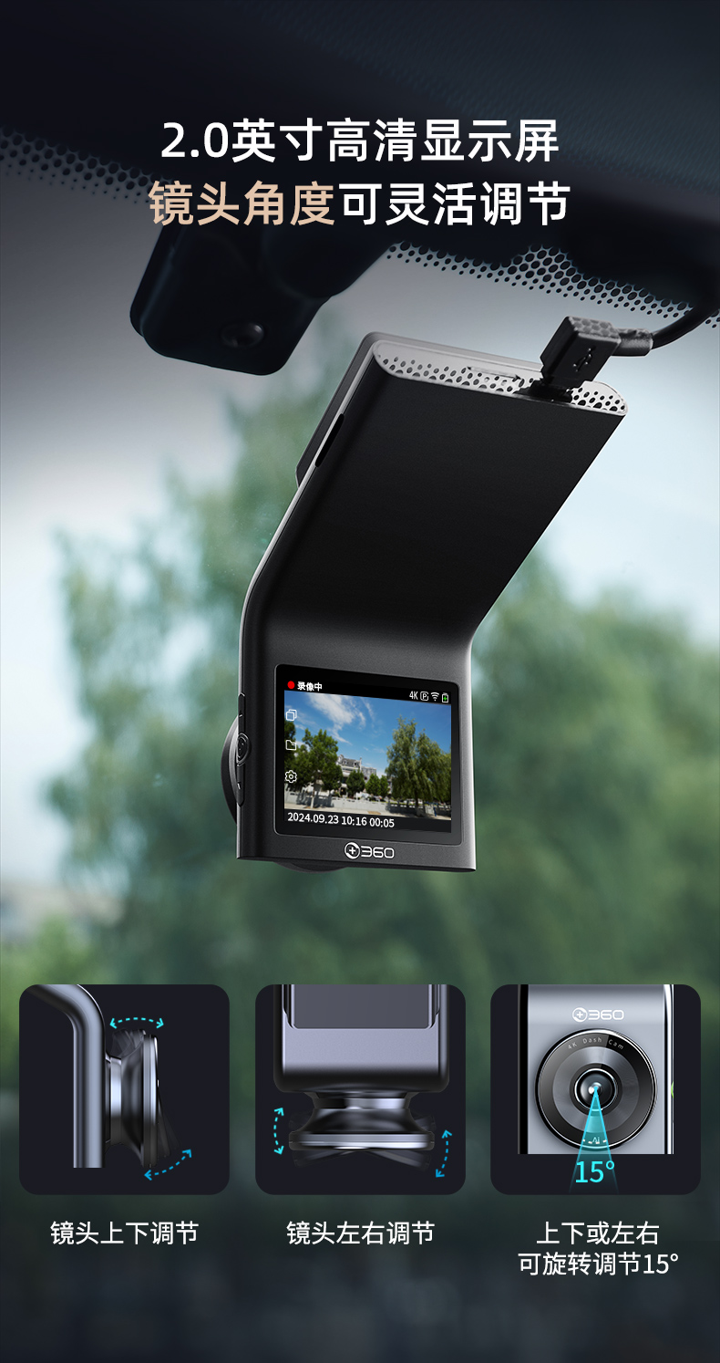 【朋友圈专享】360行车记录仪G300 4K 2.0英寸高清显示屏 F1.5大光圈 150°大广角 AI语音声控 4K超清画质 停车监控