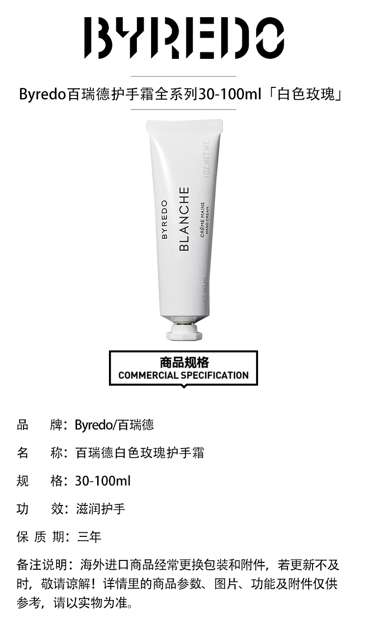 Byredo百瑞德滋润护手霜全系列100ml「麂皮」