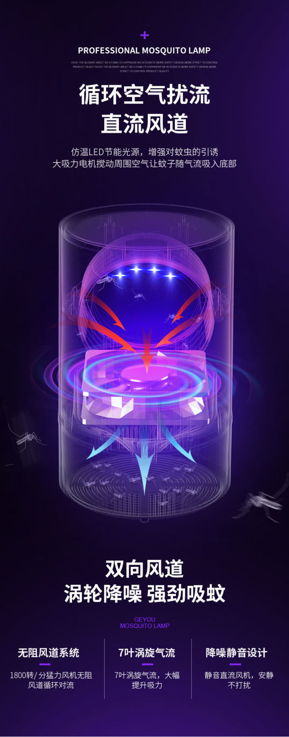 灭蚊灯家用卧室静音吸蚊灯室内驱蚊