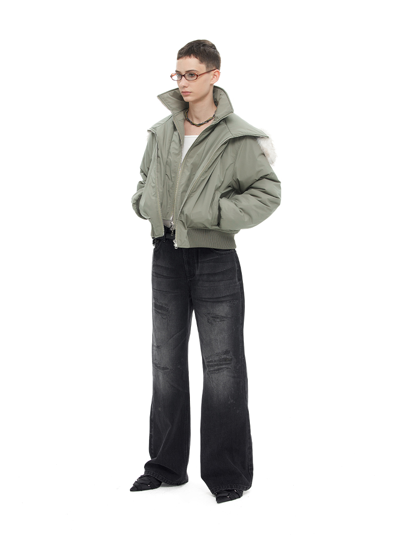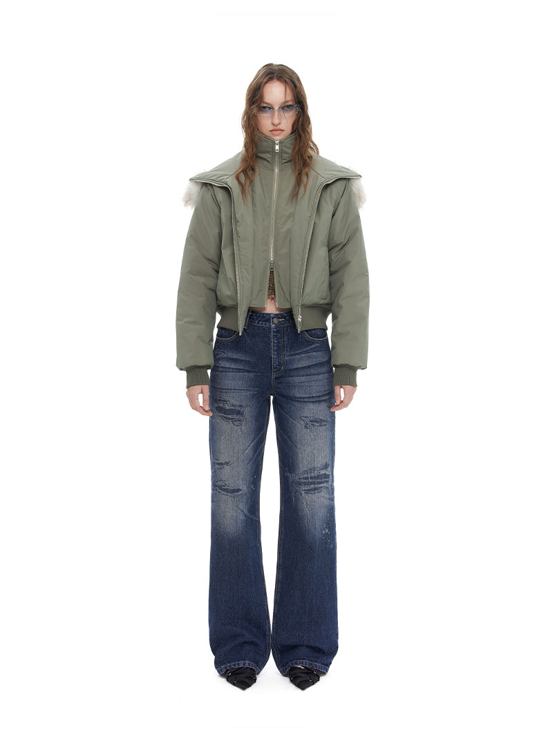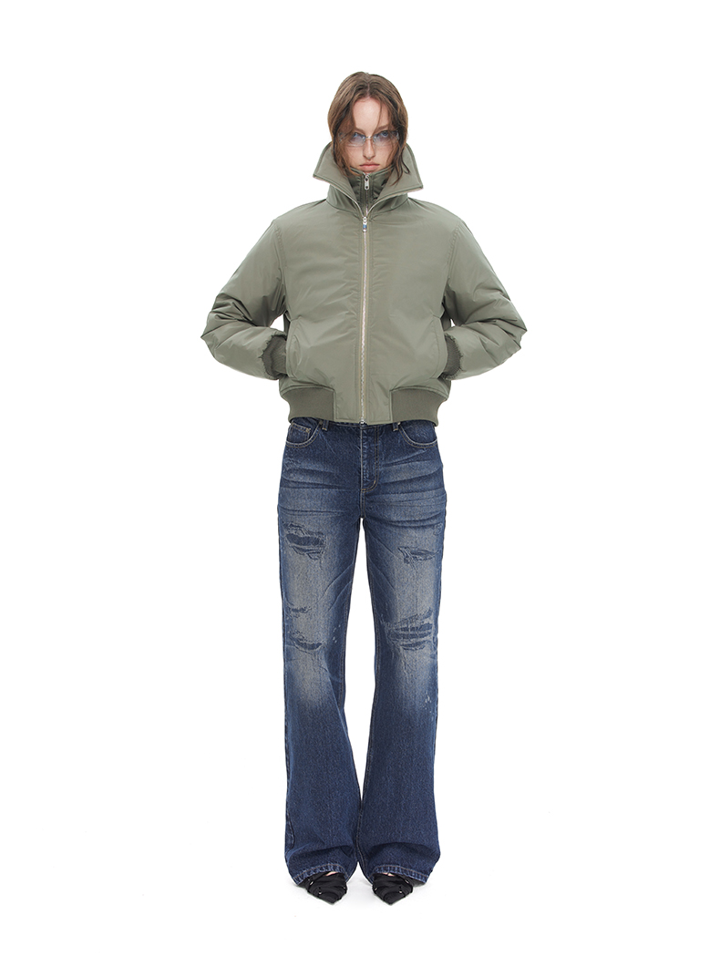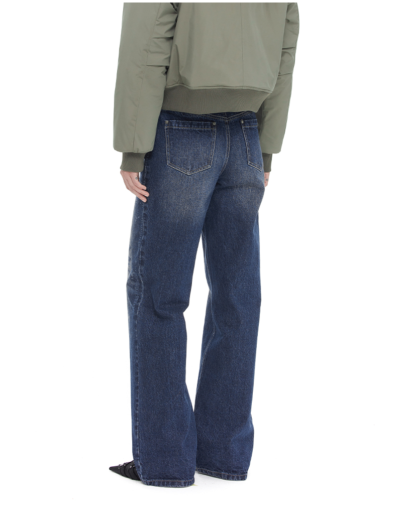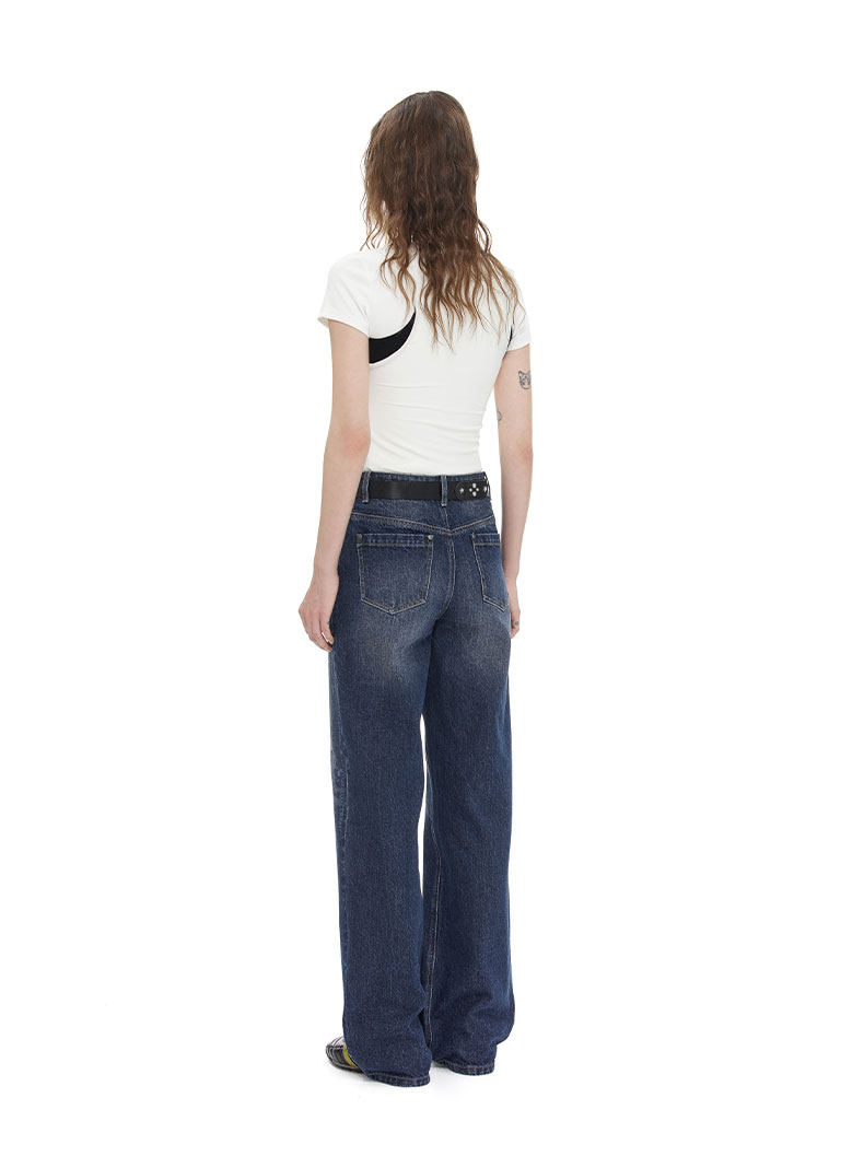 NUTH “模拟破洞”|蓝色激光印花复古做旧直筒牛仔裤