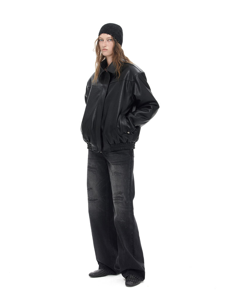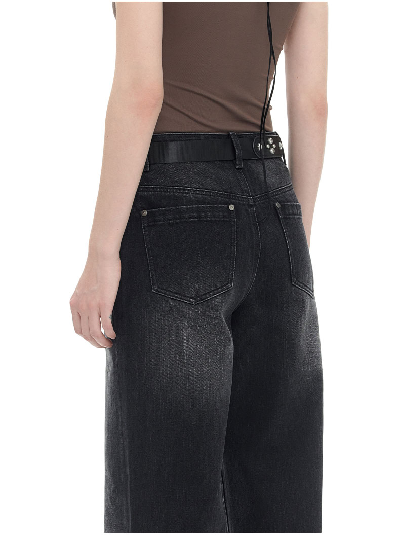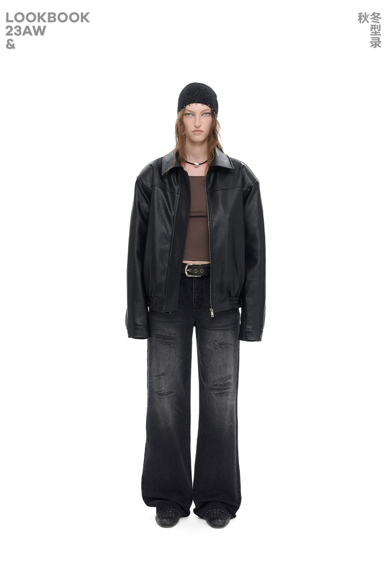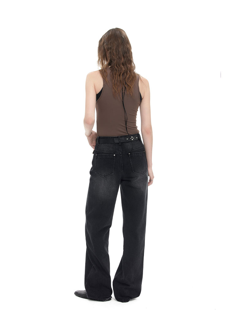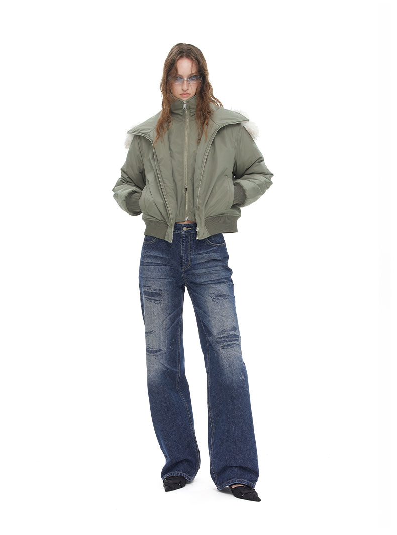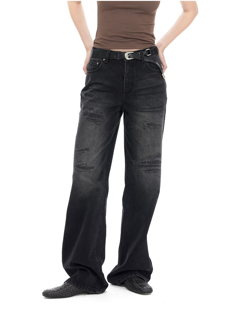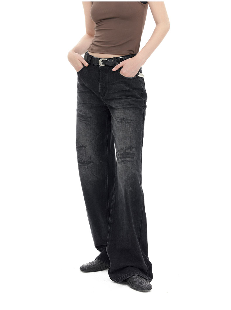 NUTH清爽水洗浅蓝色复古做旧直筒牛仔裤女
