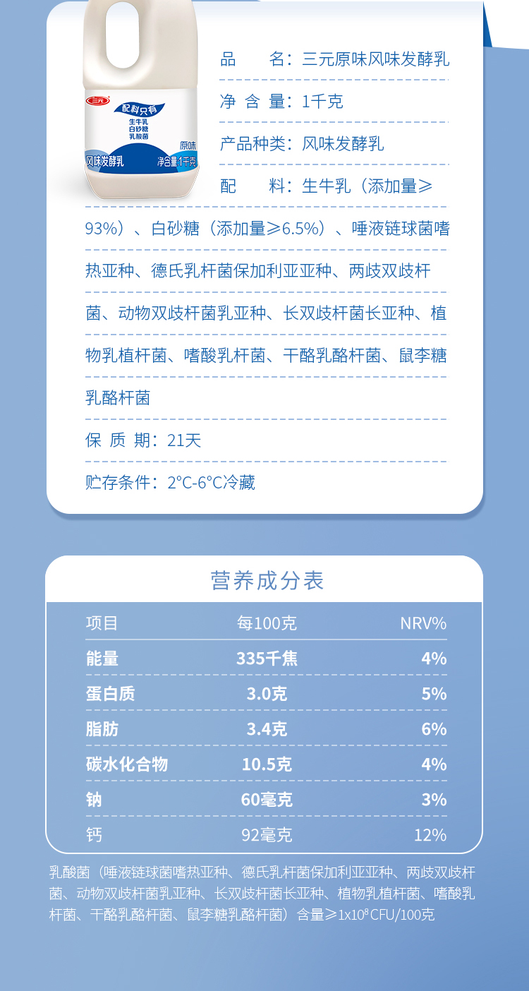 【自提-低温】三元桶装原味风味酸牛奶1kg