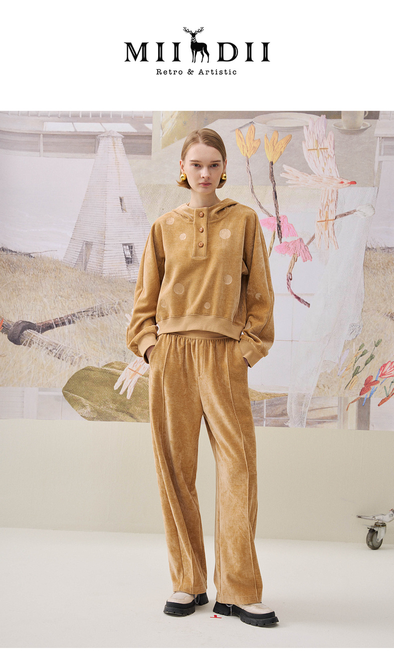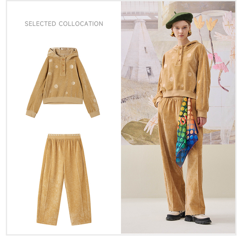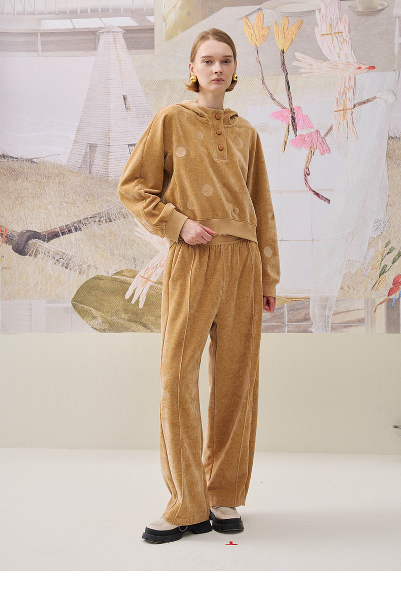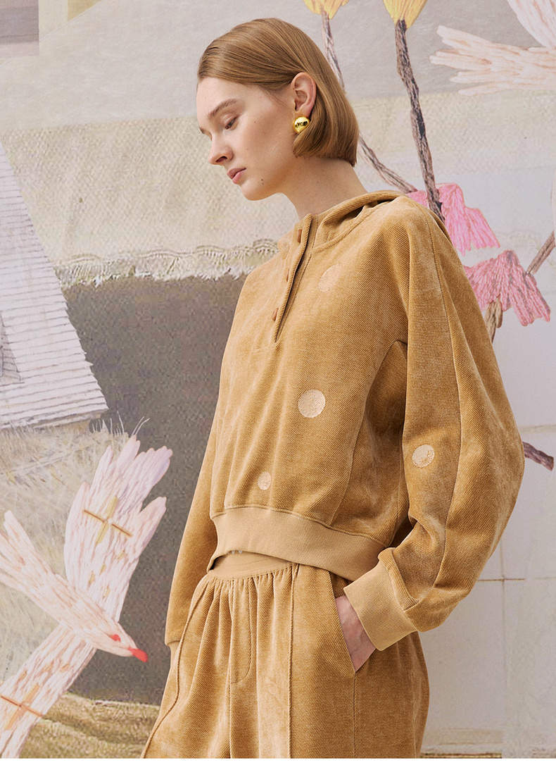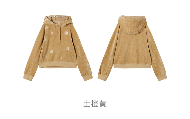谜底连帽短款卫衣长袖2025冬新品舒适雪尼尔波点提花女254MV1716