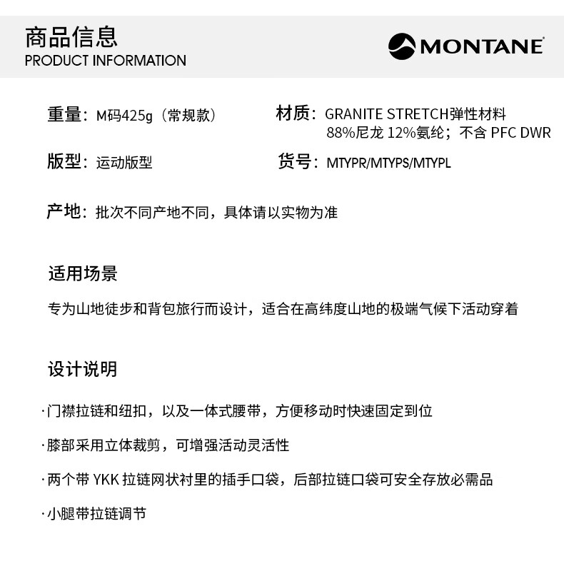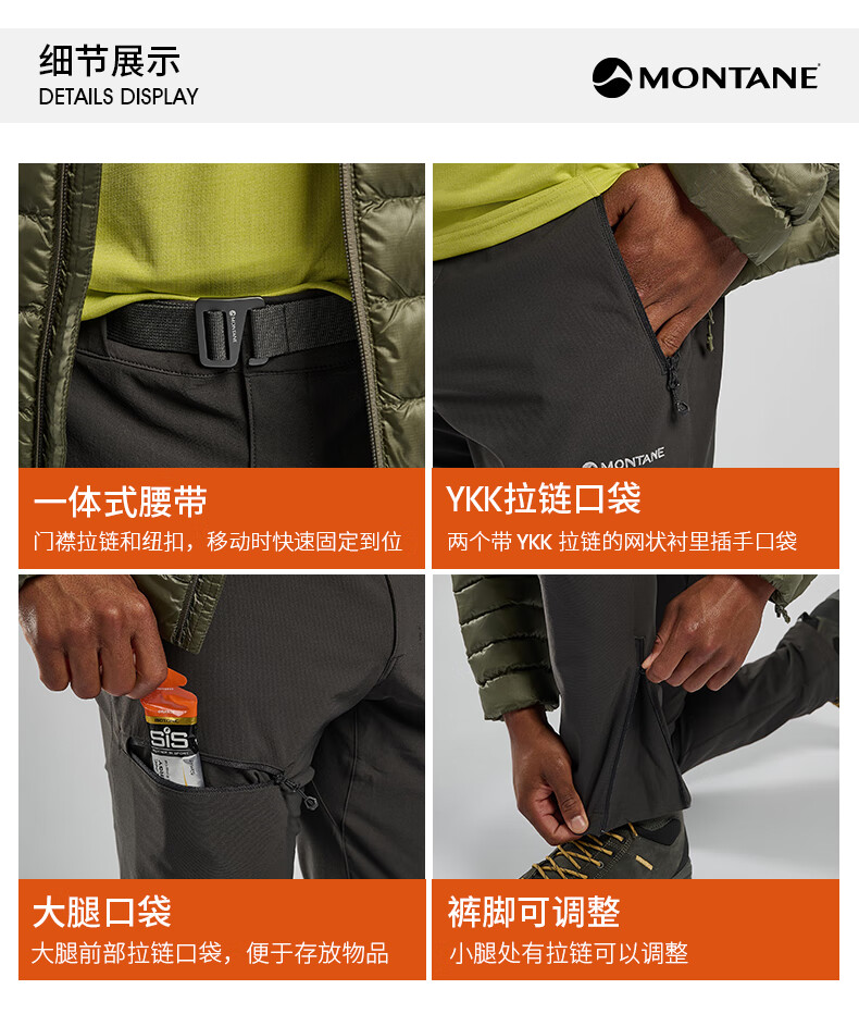 MONTANE 盟泰恩TENACITY男士软壳裤 防风高弹裤 轻量耐磨徒步越野户外裤子