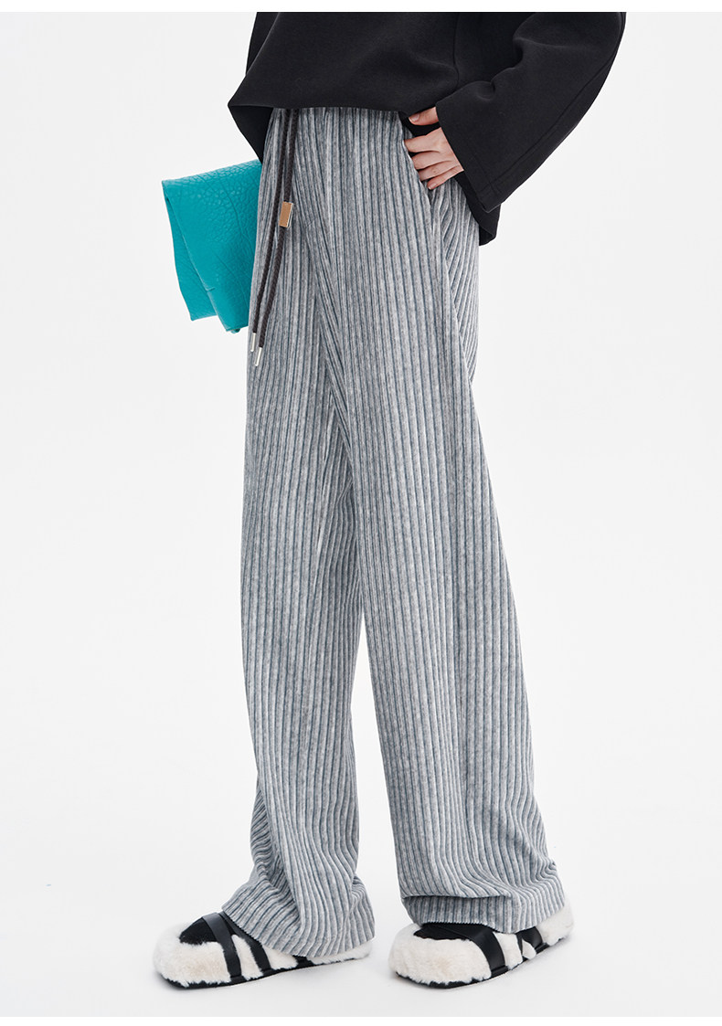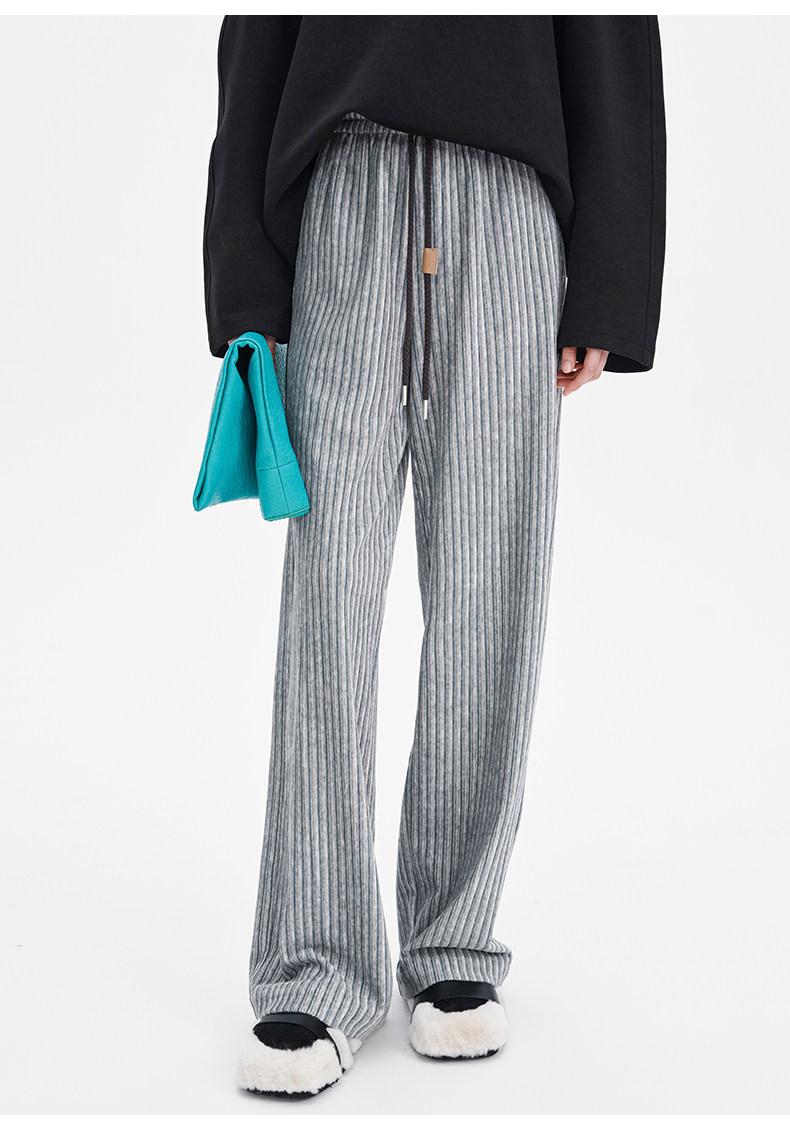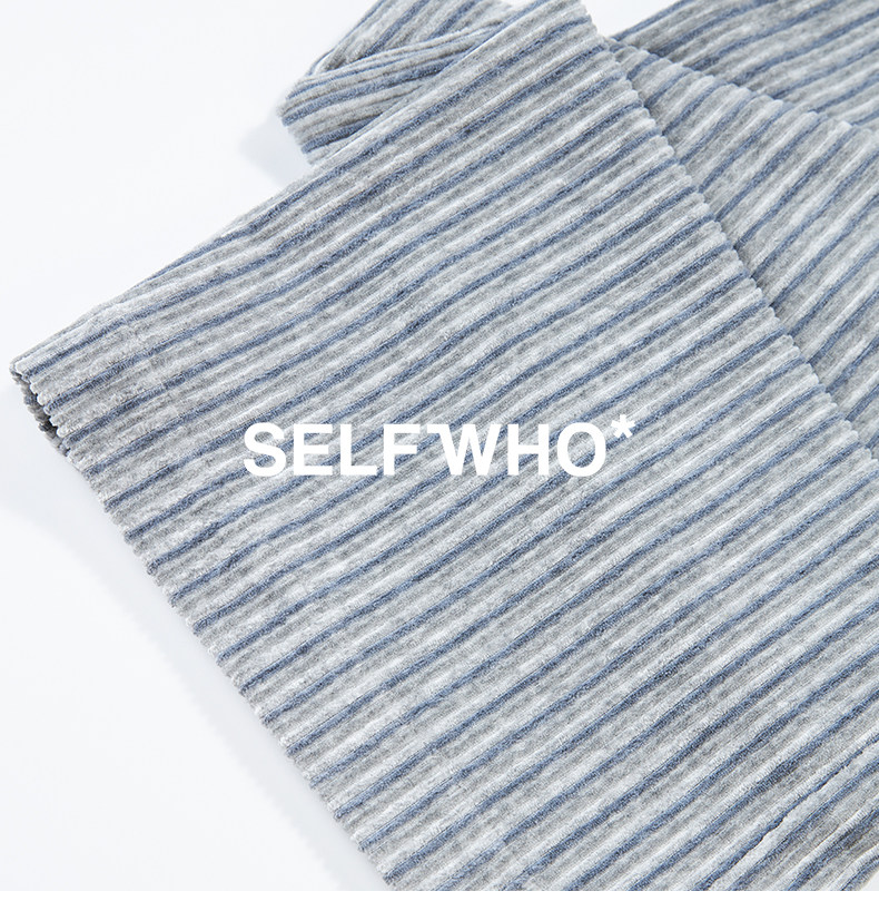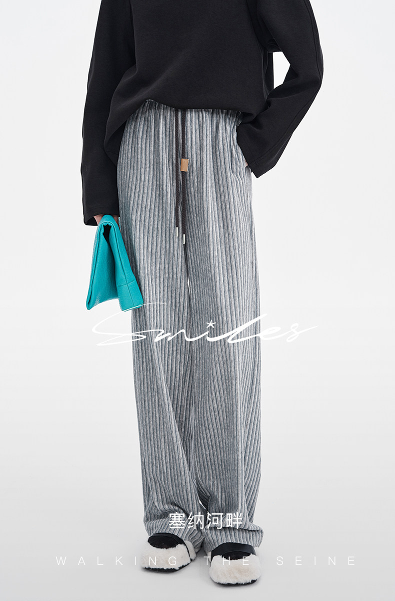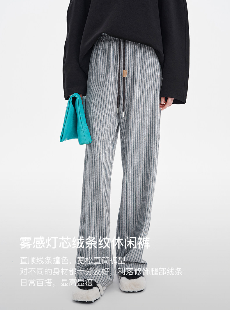 SELFWHO条纹灯芯绒休闲裤女2026春季新款通勤宽松显瘦糯米直筒裤