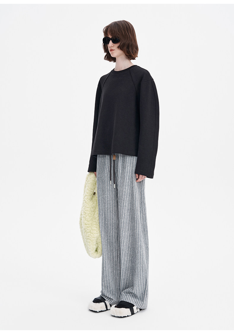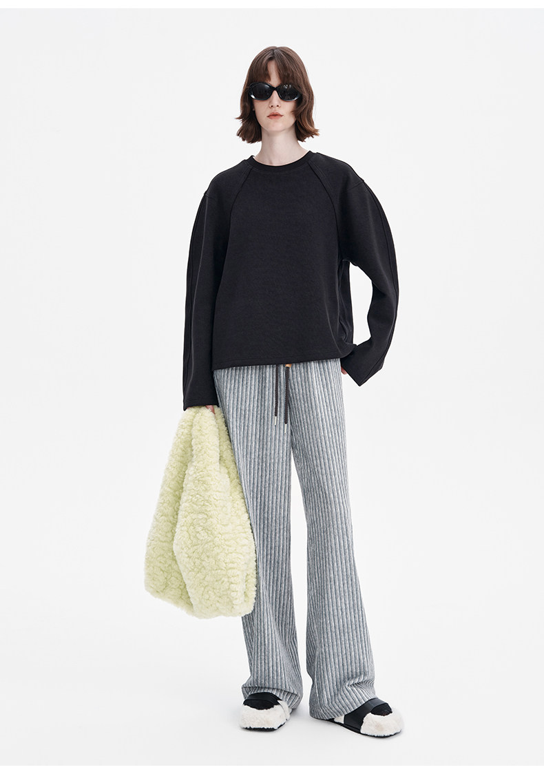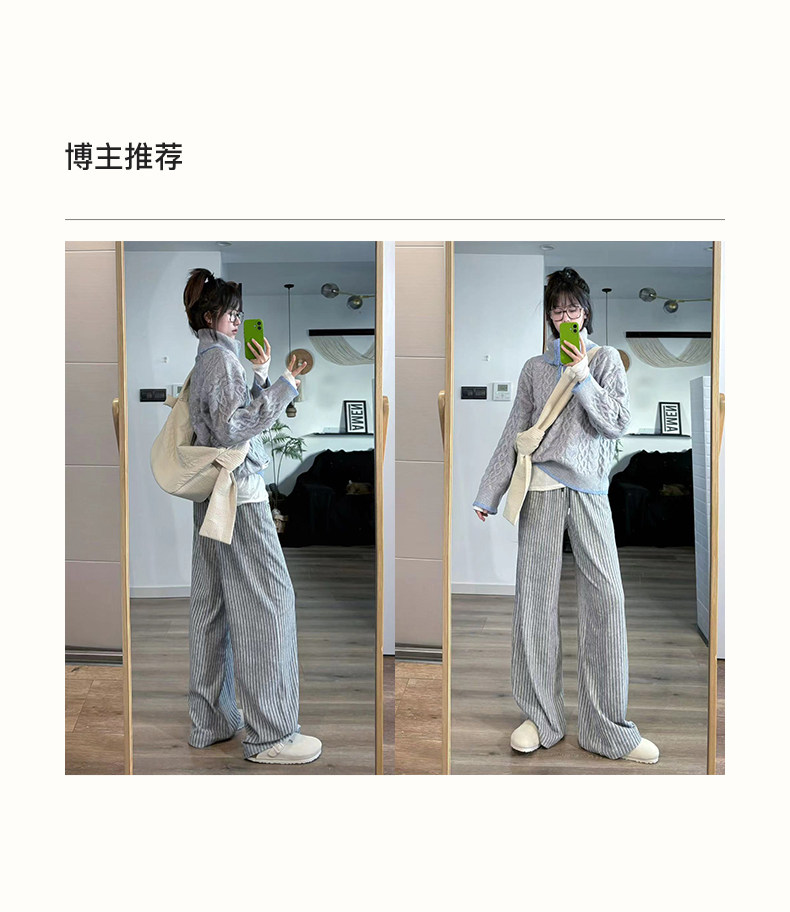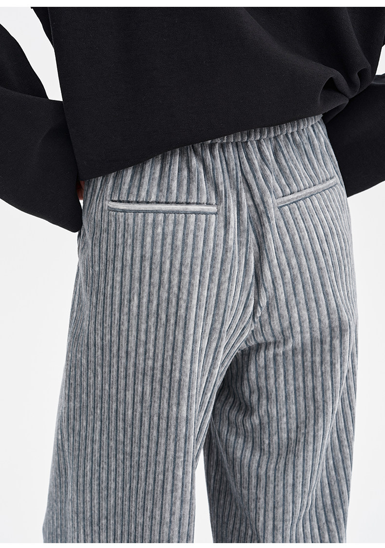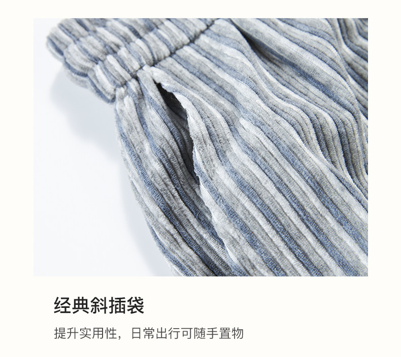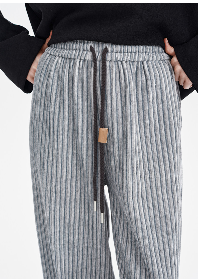 SELFWHO条纹灯芯绒休闲裤女2026春季新款通勤宽松显瘦糯米直筒裤
