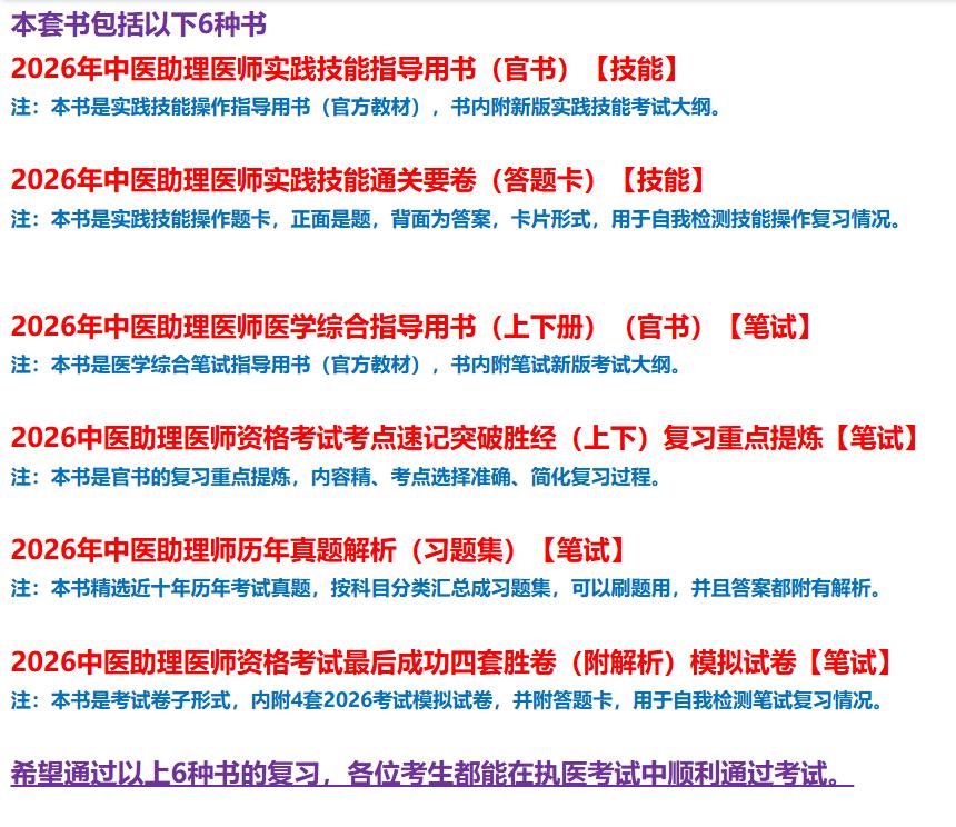 【全套6册】2026年中医执业助理医师资格考试全套用书 实践技能+医学综合笔试+历年真题+模拟试卷+技能操作答题卡中医助理医师