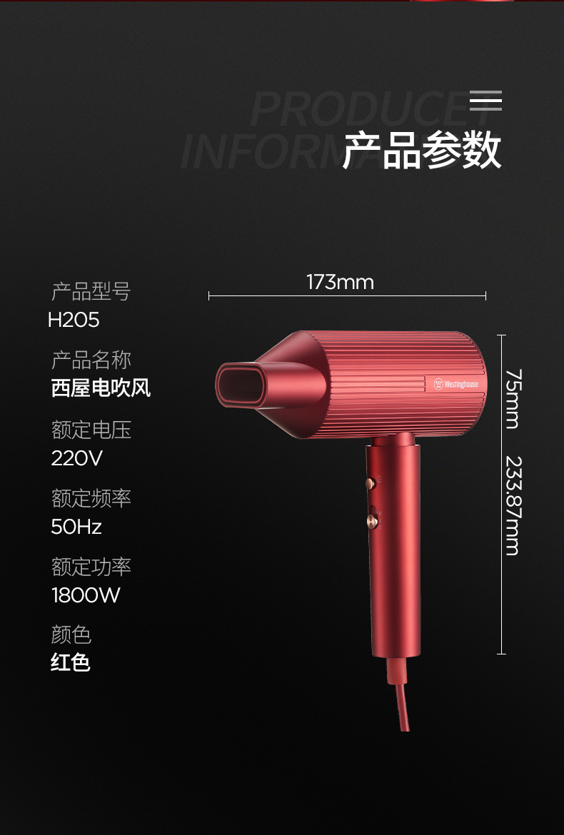 西屋(Westinghouse) 负离子护发电吹风 H205