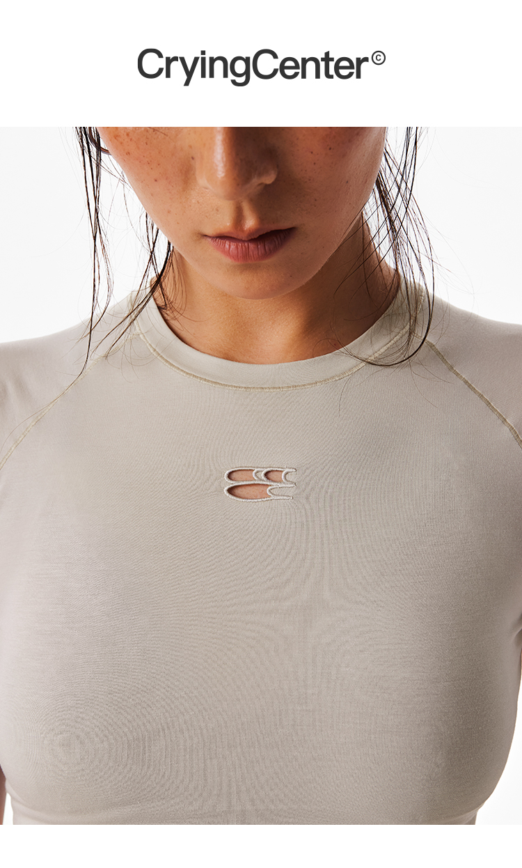 CryingCenter 凉感运动漏腰镂空健身莫代尔紧身tee 哭喊中心