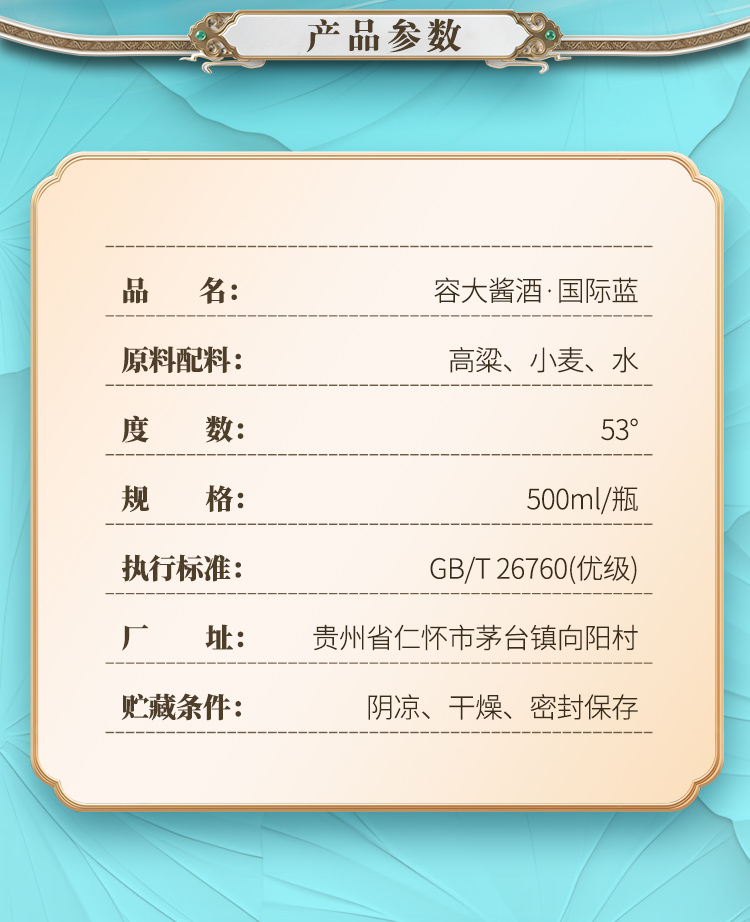 53度容大酱酒国际蓝 酱香型白酒 500ml