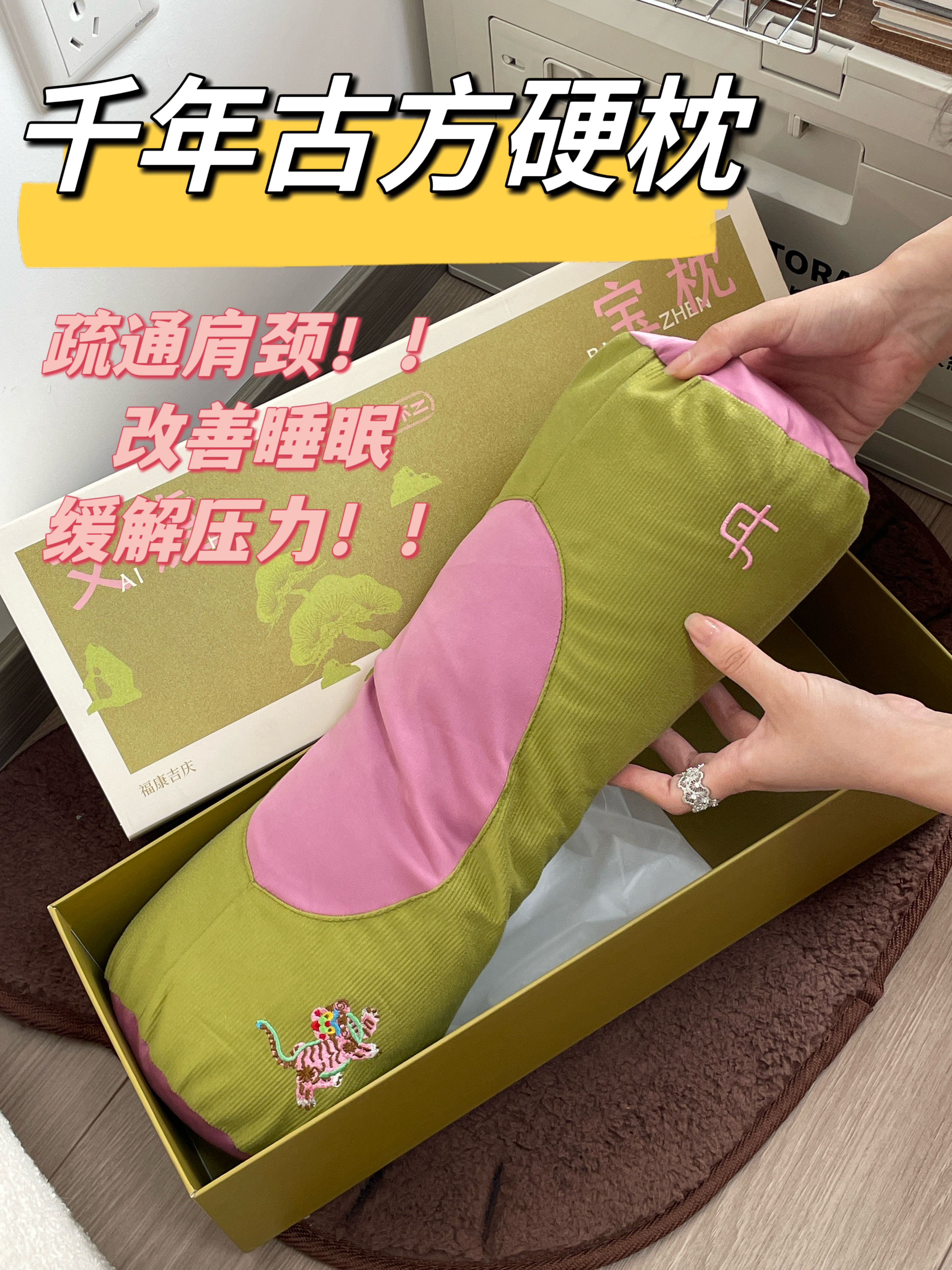 颈椎救星,8小时黄金睡眠!真不二艾虎枕,千年古方硬枕! ✅要想脖子软,就要睡硬枕! ✅3斤药芯,3倍香药入胆。3年陈艾草复配柏籽壳,先通后养! ✅ 一枕多用,枕头,枕腰、枕腿都可以,外罩可分离设计