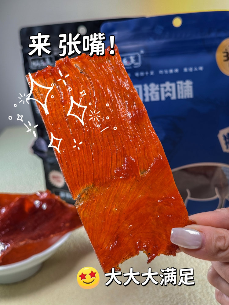 它是用猪肉🥩腌制、烘烤的片状肉制品,食用方便、制作考究、美味可口🤤,猪肉脯色泽大都呈鲜艳的棕红色,具有口感丰富