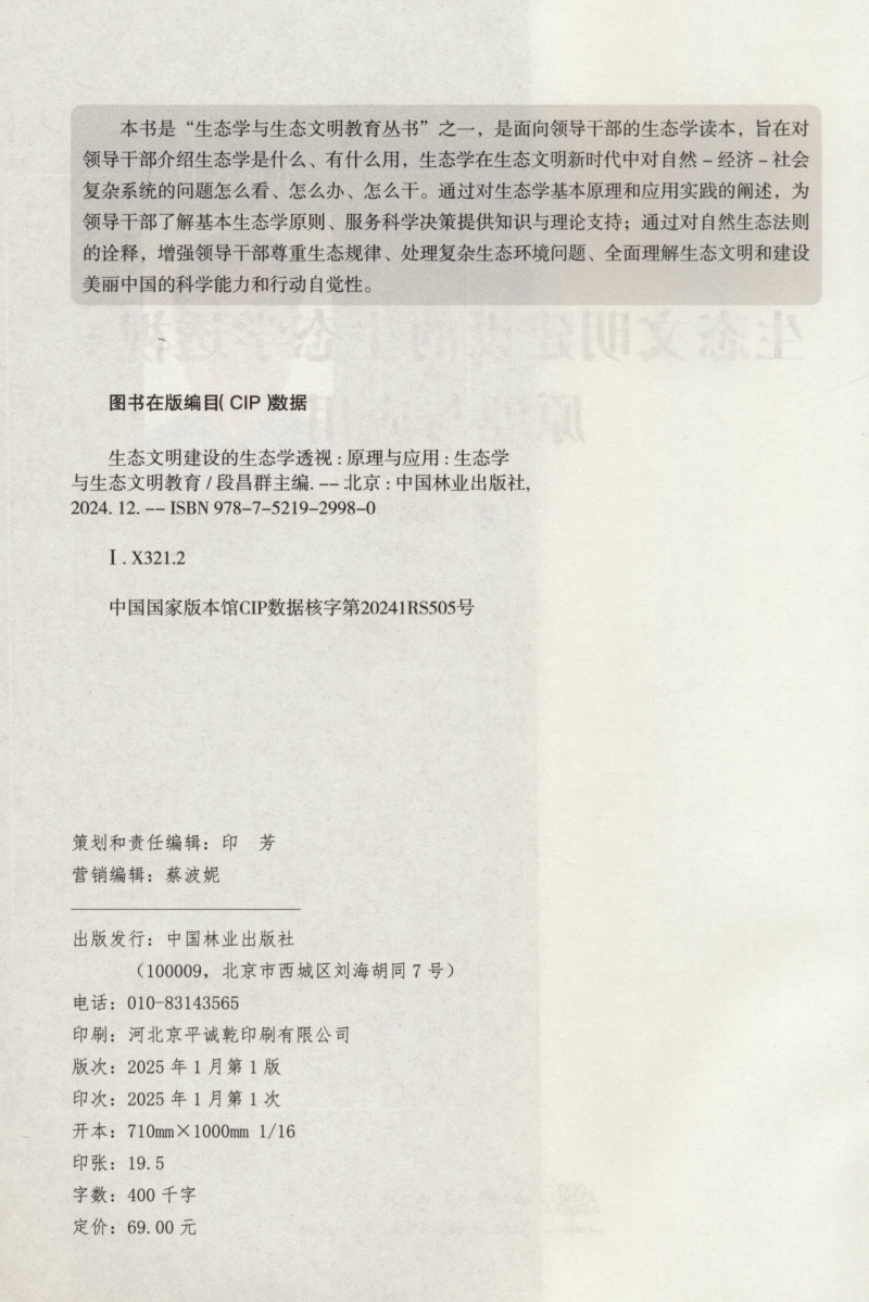(生态学与生态文明教育) 生态文明建设的生态学透视:原理与应用 &2998