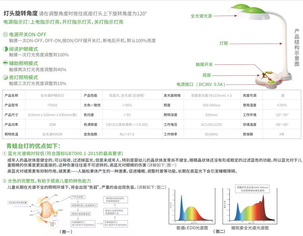 耀铭豪全光谱 青蛙儿童近视护眼专用台灯 10W