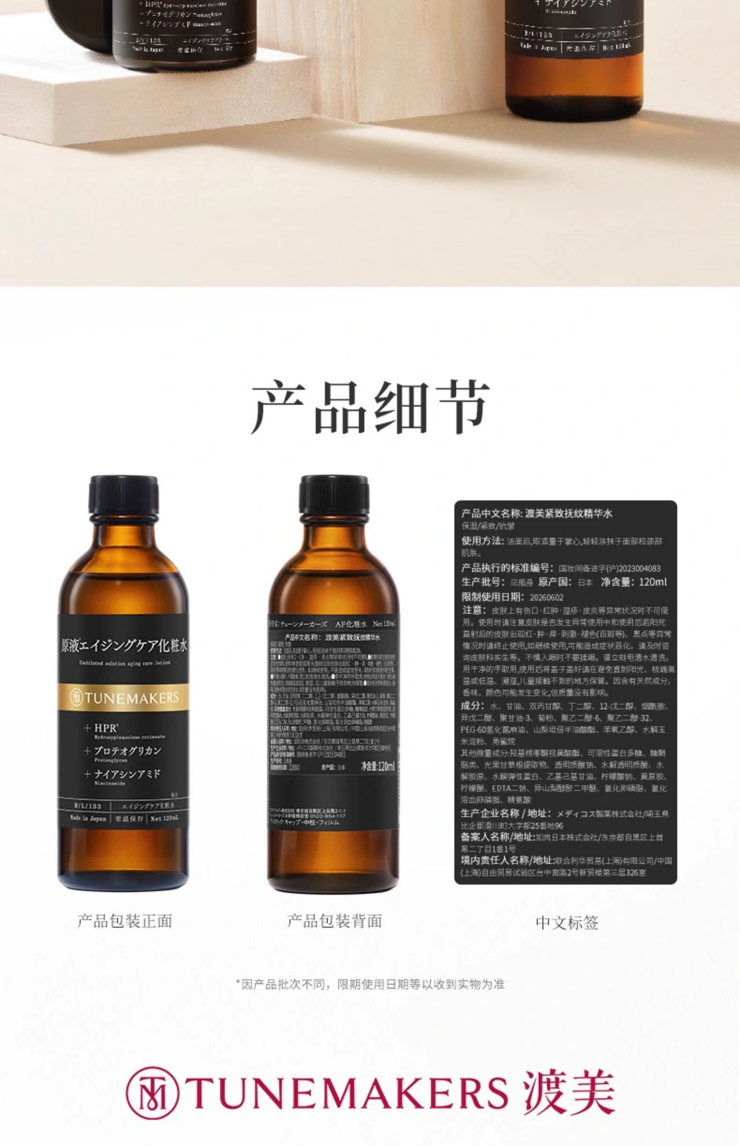 TUNEMAKERS 渡美 紧致抚纹精华水 120ml