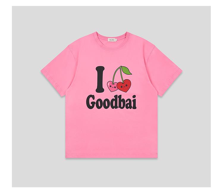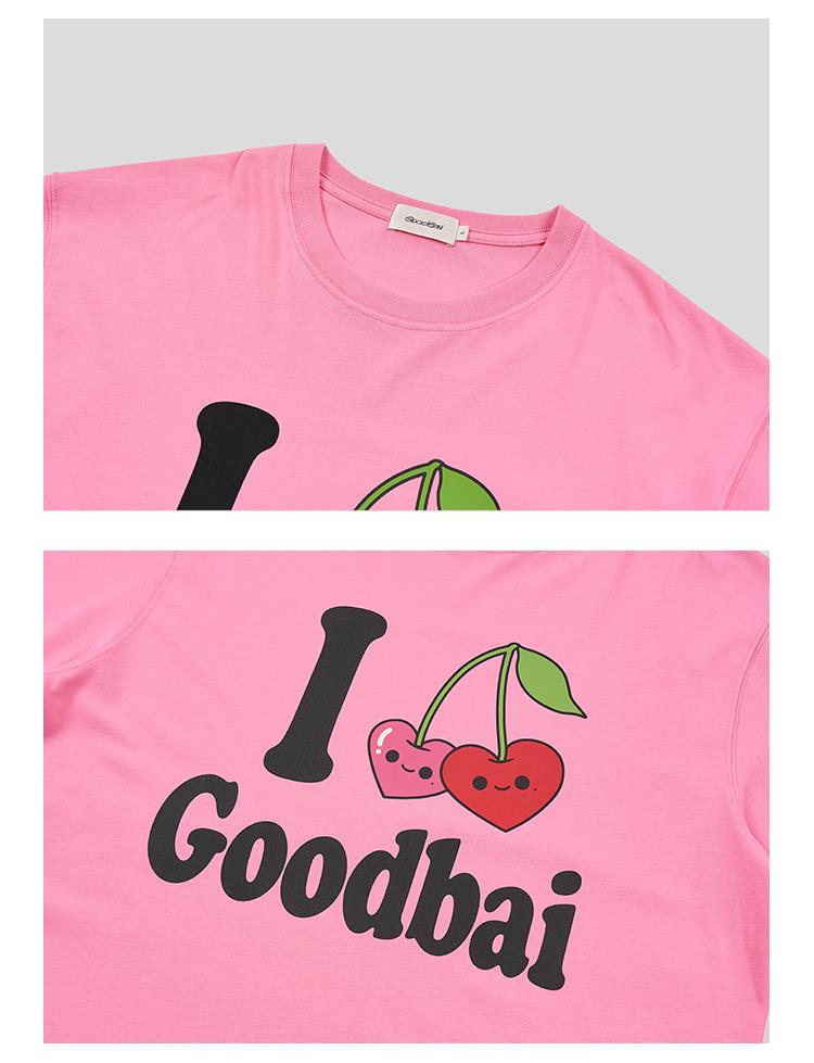 GOODBAI 樱桃表情slogan印花oversize短袖T恤