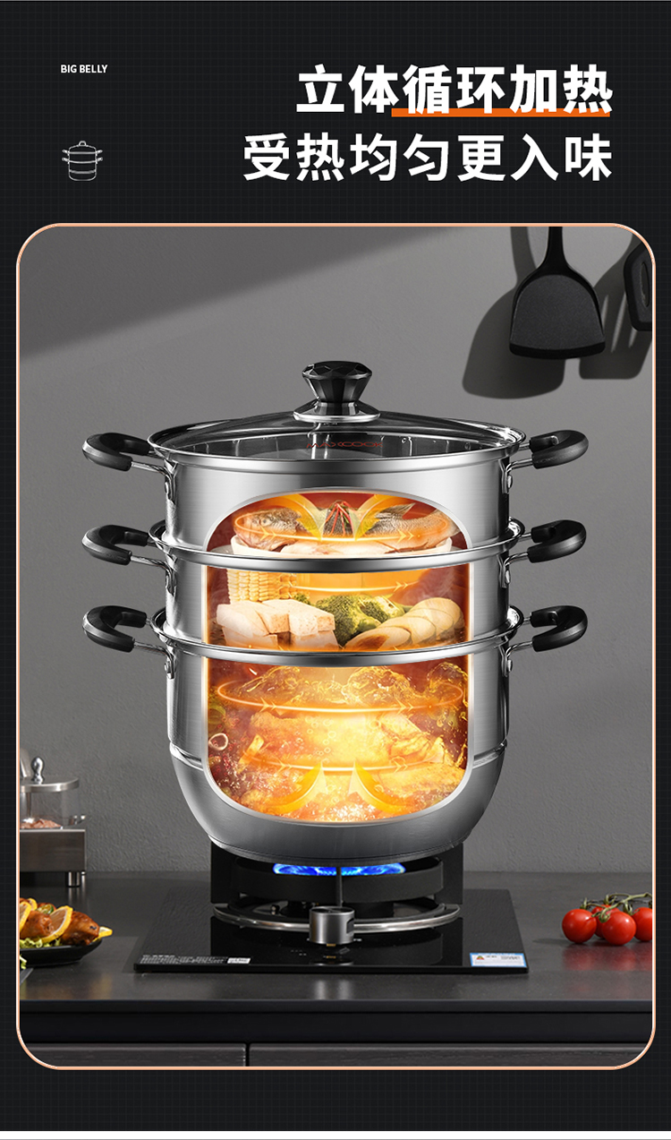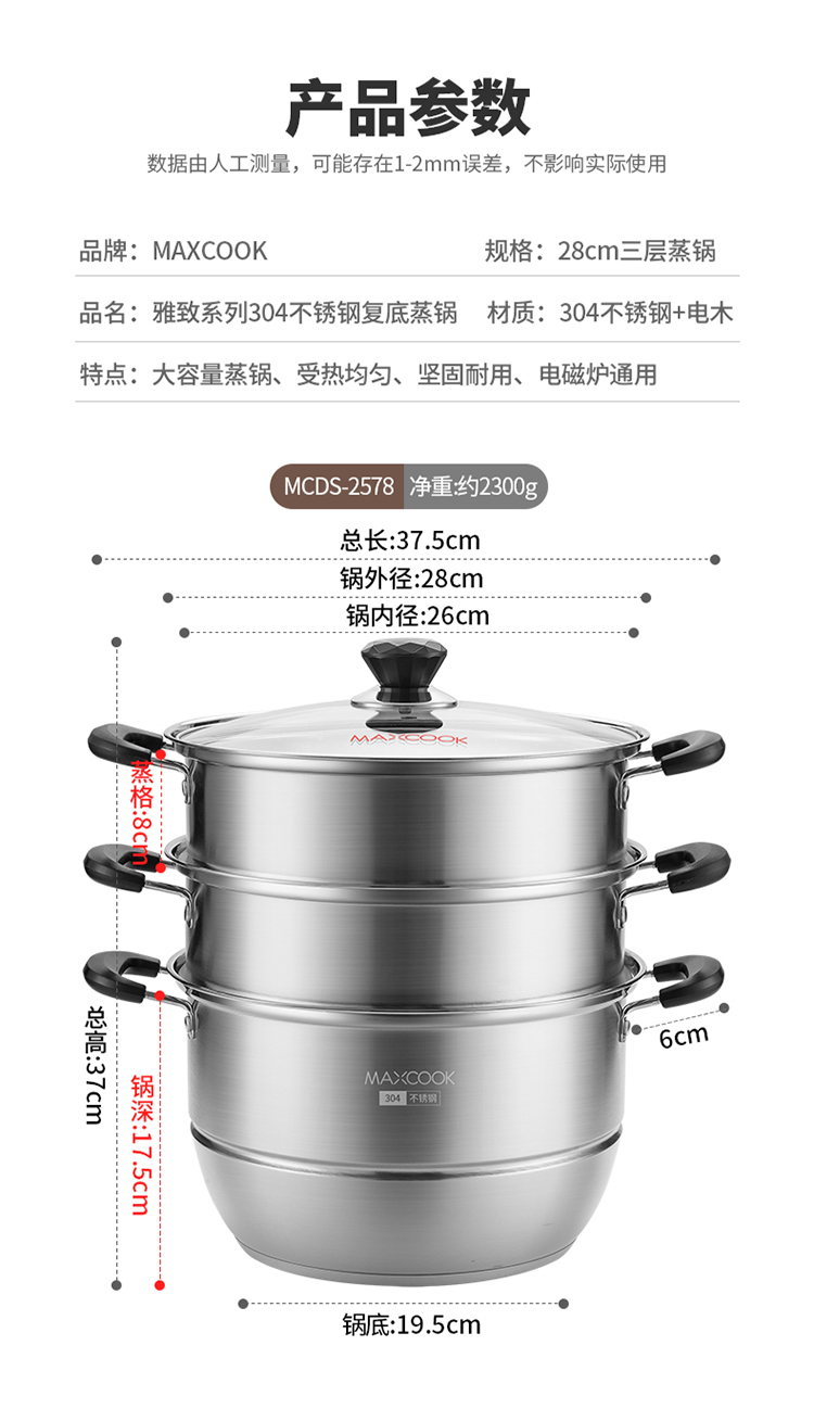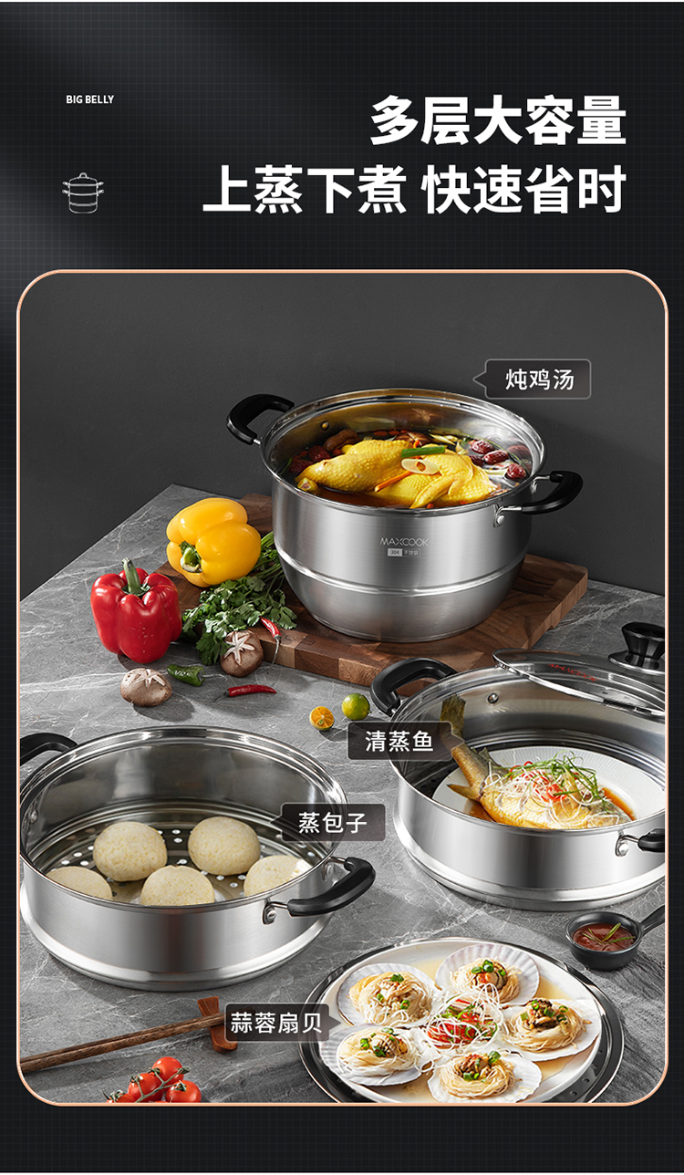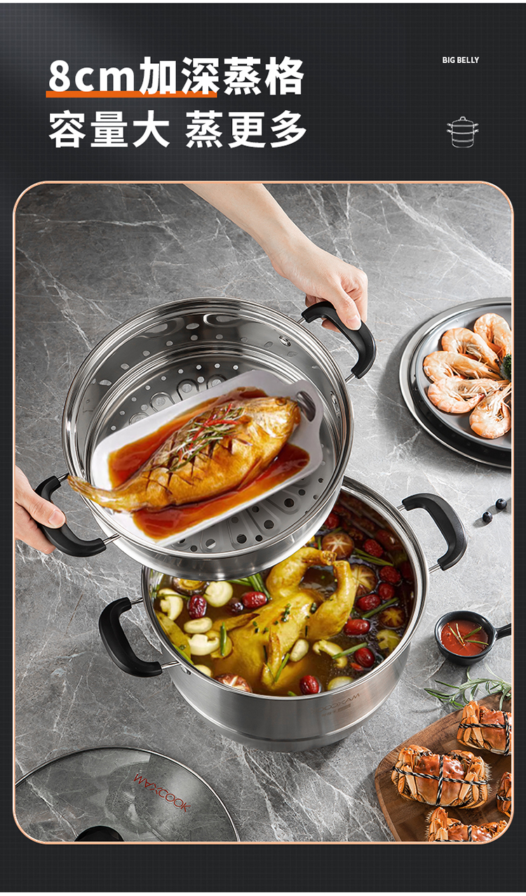 美厨雅致系列304不锈钢复底蒸锅28cmMCDS-2578