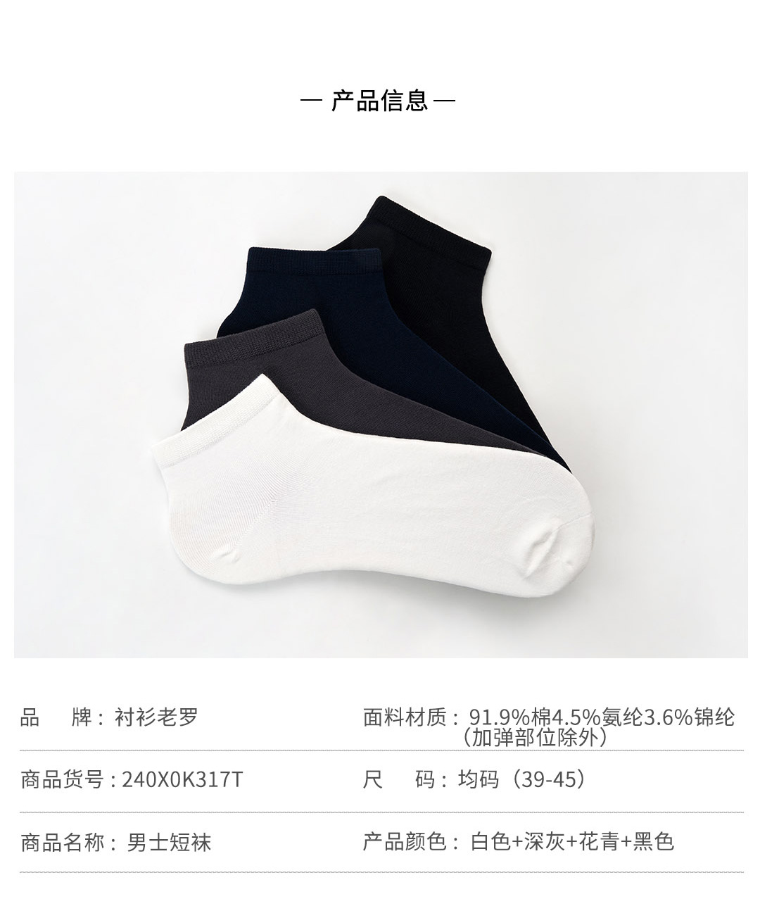 【艾草防臭耐磨】短筒弹力棉袜透气吸汗一双装240X0K317T