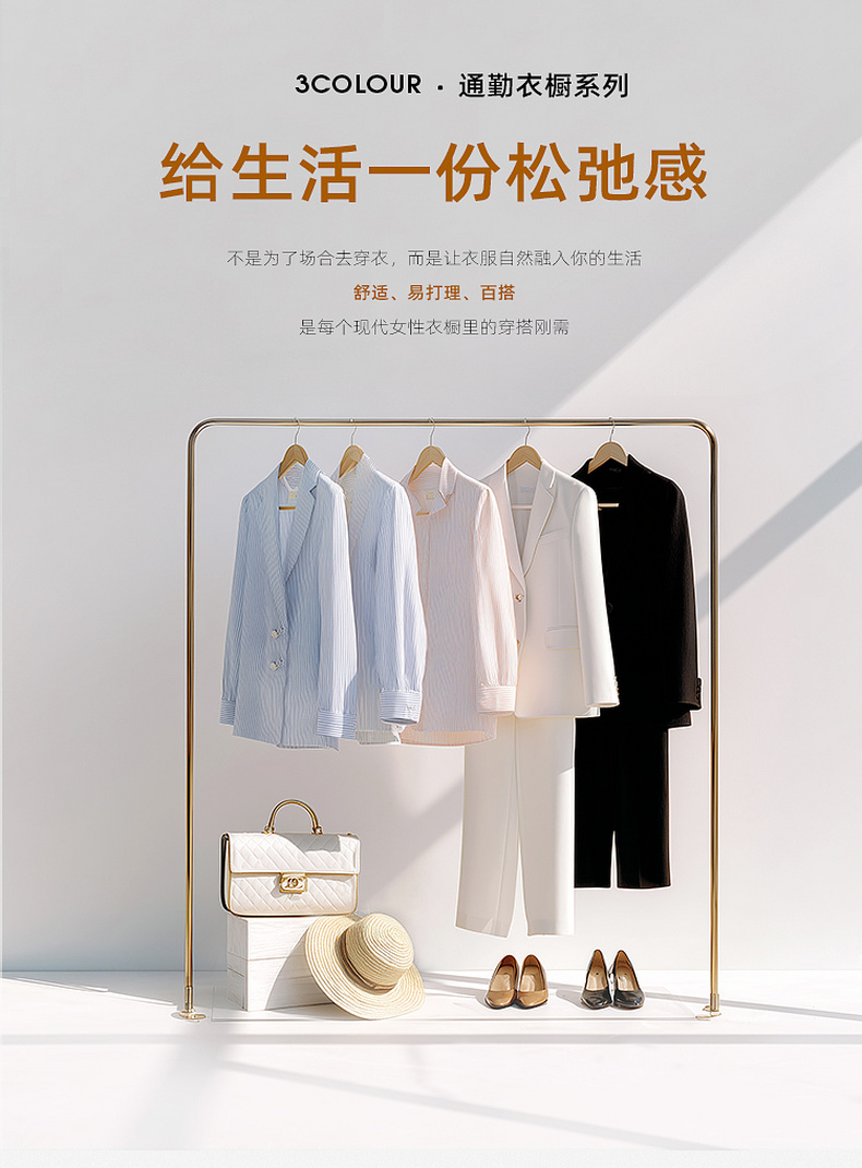 - 3COLOUR,一直致力于探索自我与时尚审美,用穿衣哲学折射生活主张,在流动中探寻恒久。