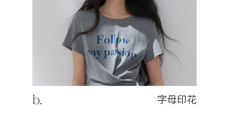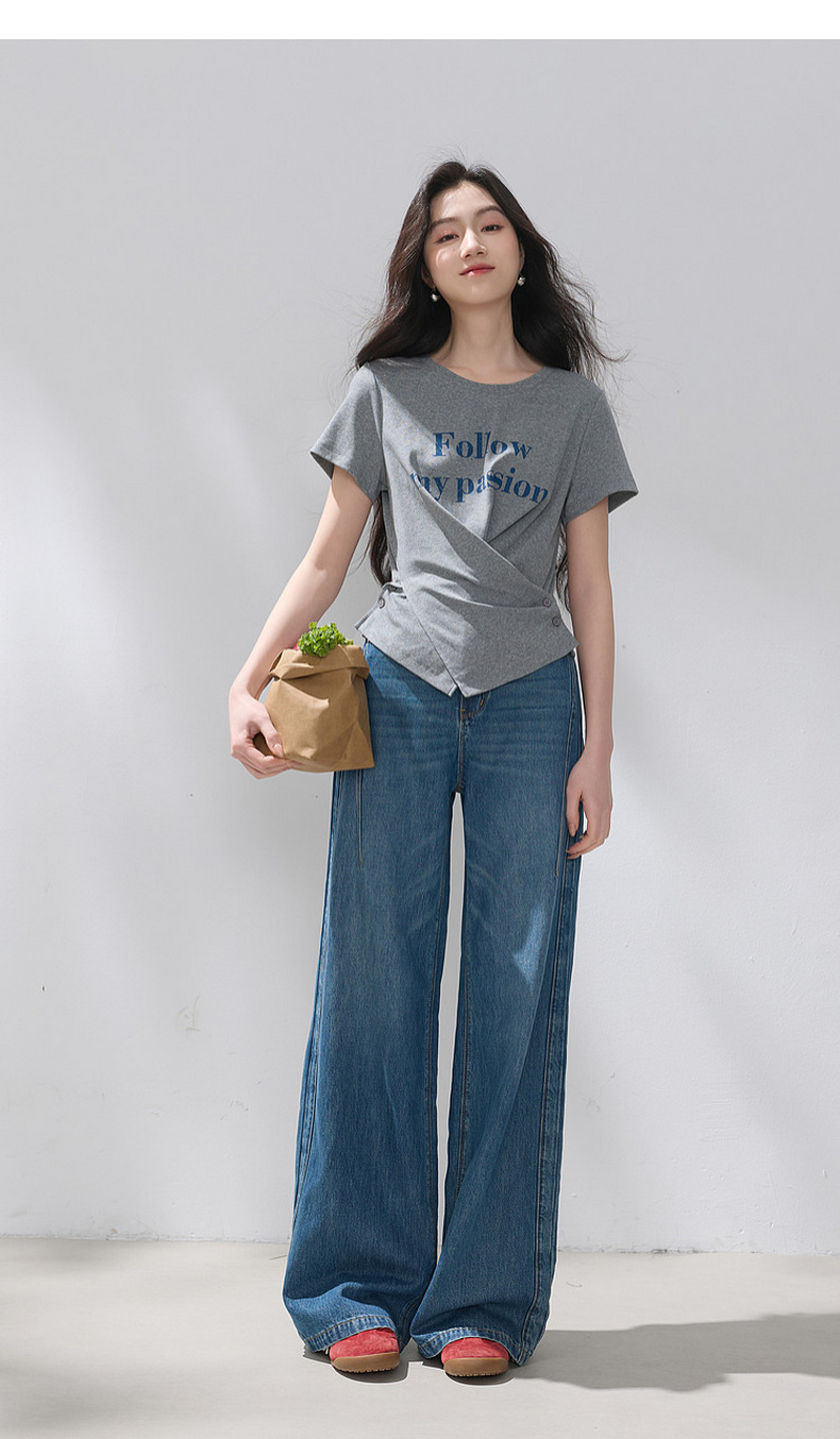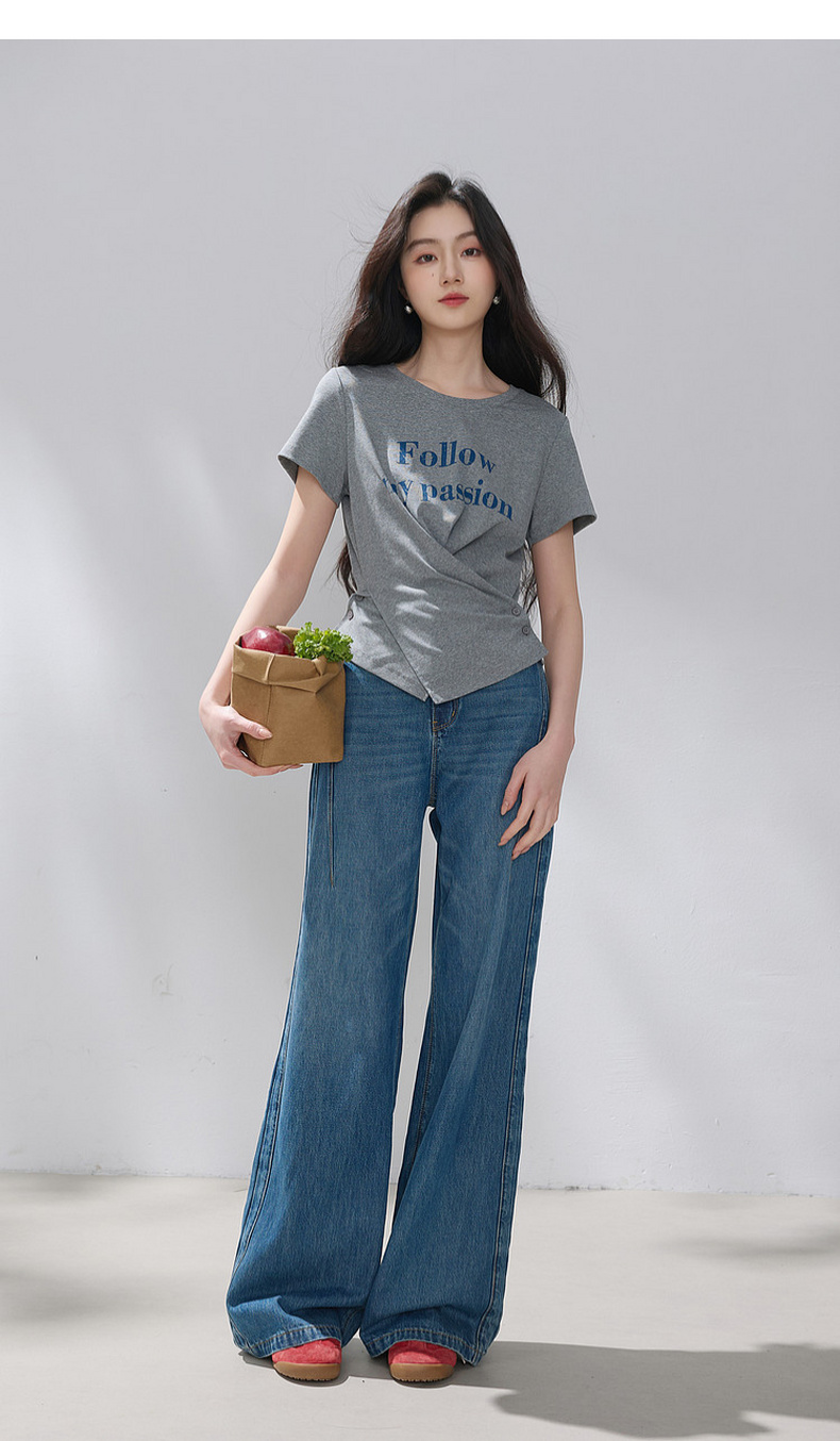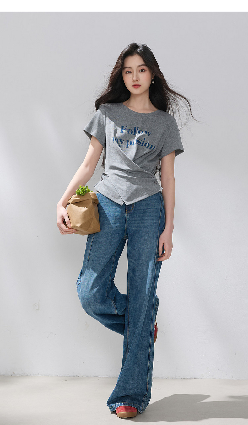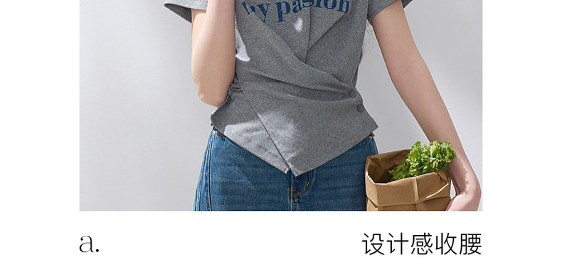 三彩2026夏季新款设计感收腰上衣短款字母印花T恤圆领短袖M