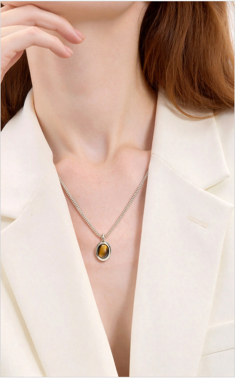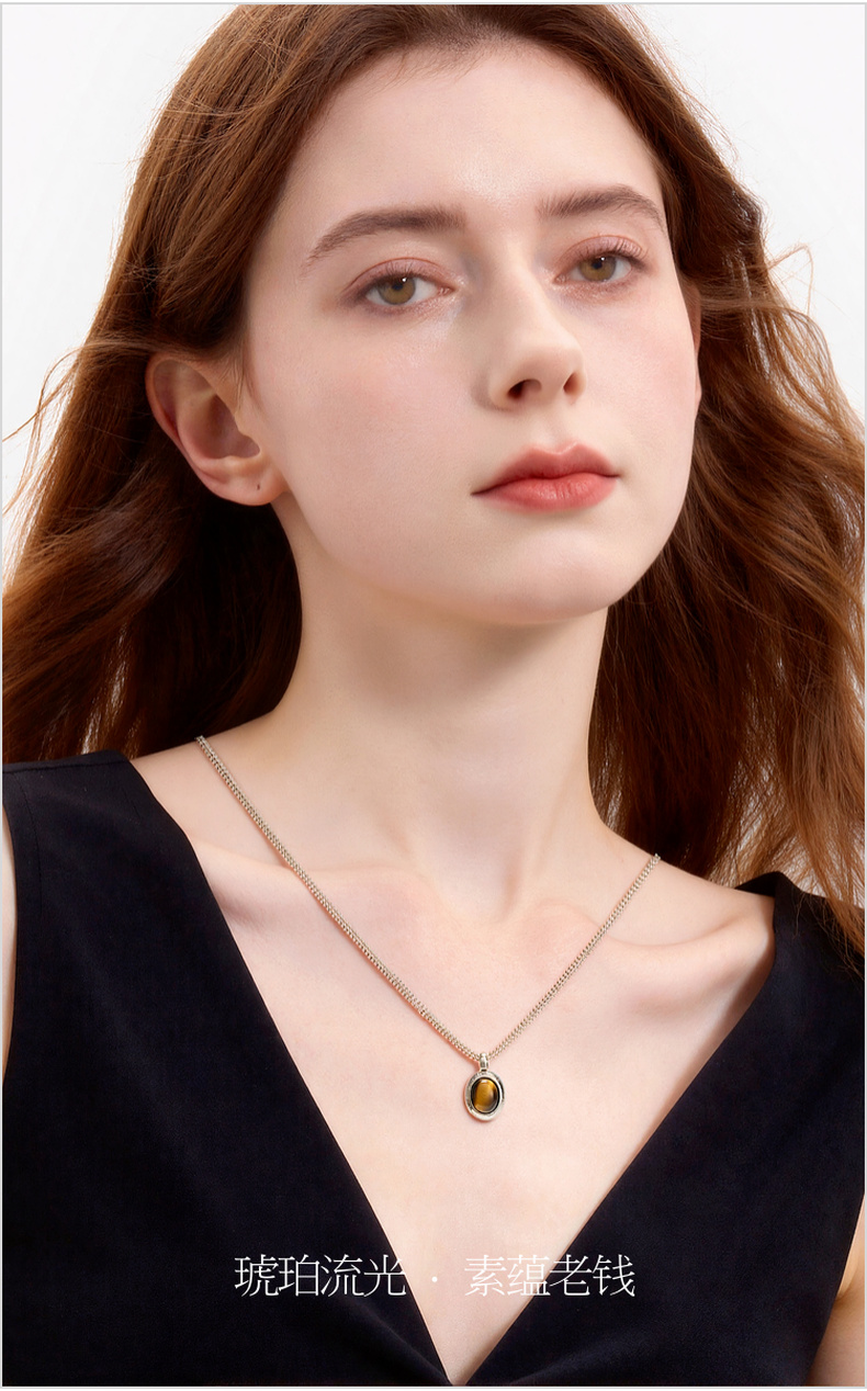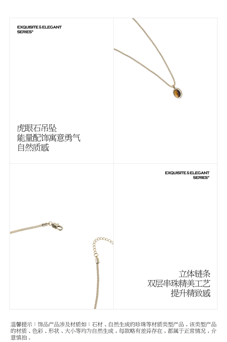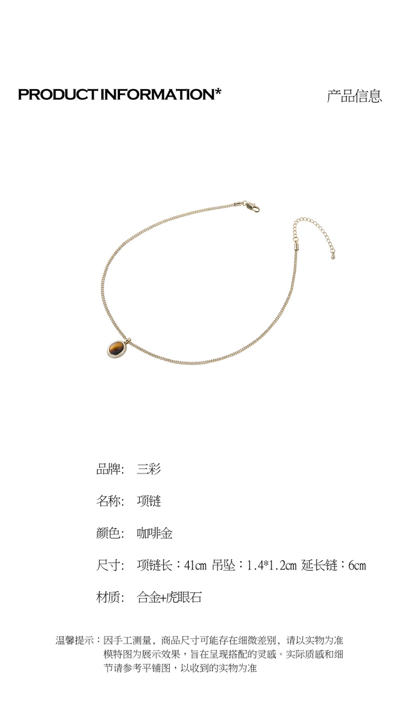 三彩2026新款虎眼石圆形吊坠镀咖啡金项链轻奢能量勇气小众通勤
