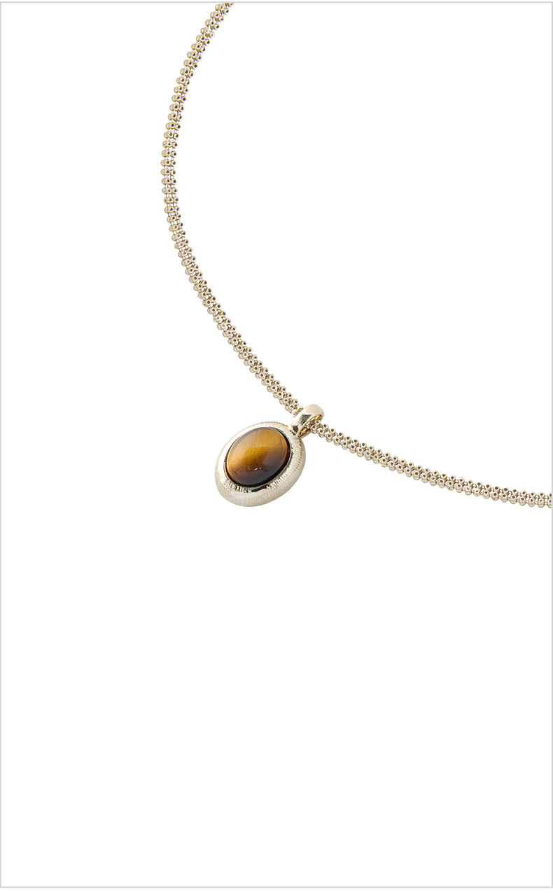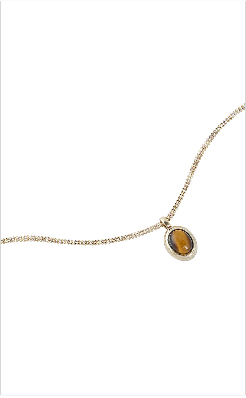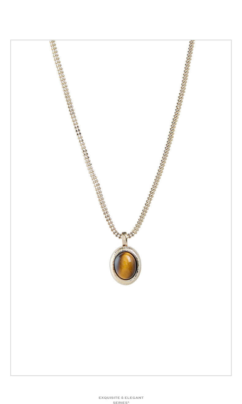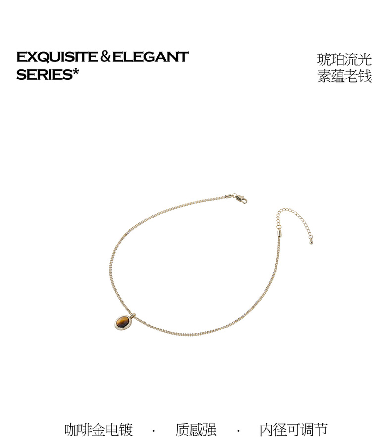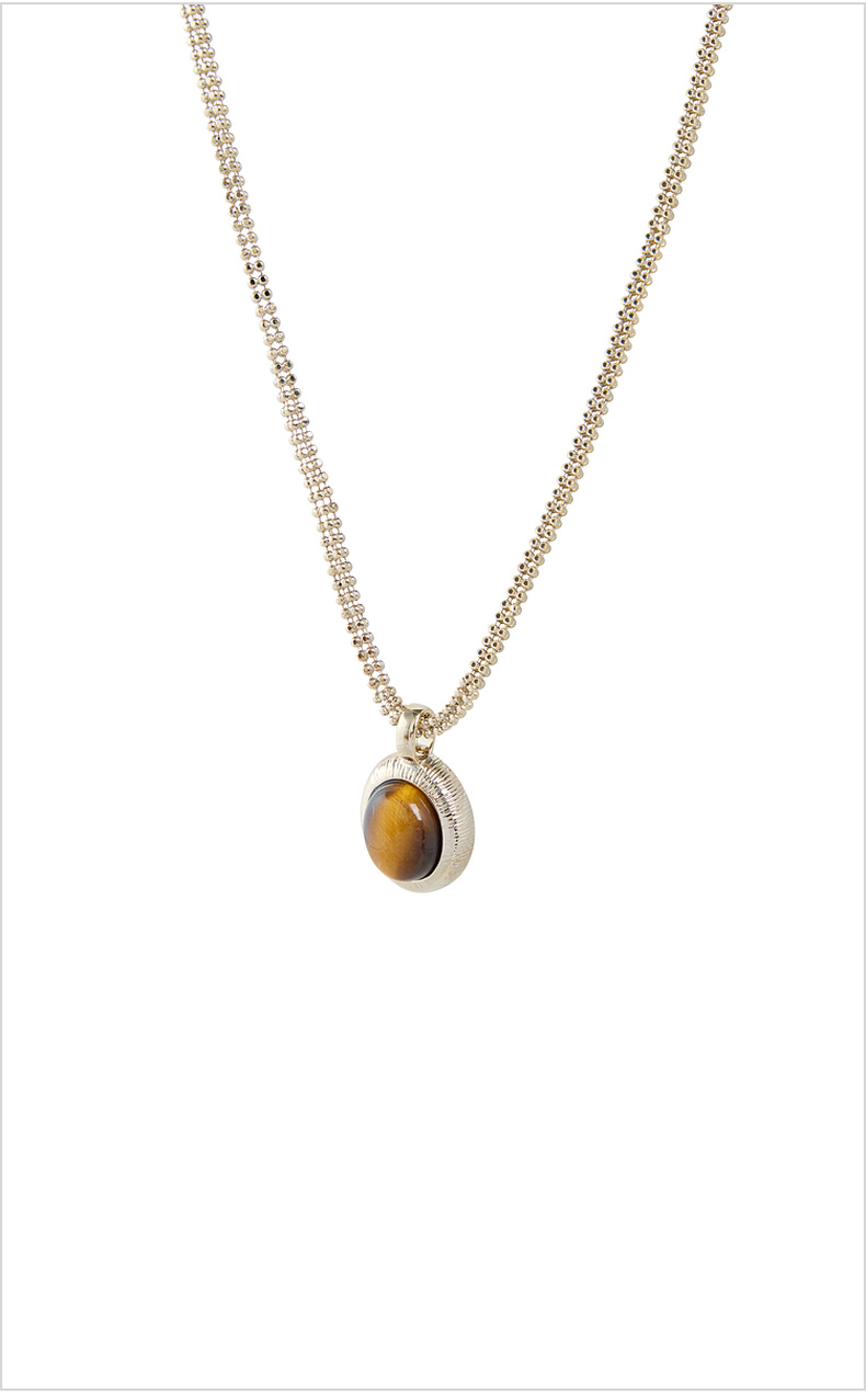 三彩2026新款虎眼石圆形吊坠镀咖啡金项链轻奢能量勇气小众通勤