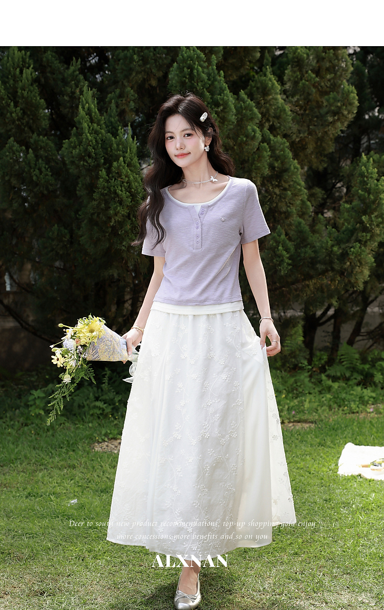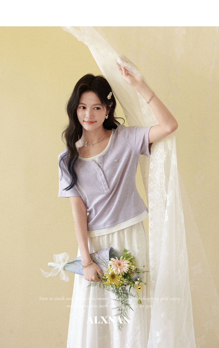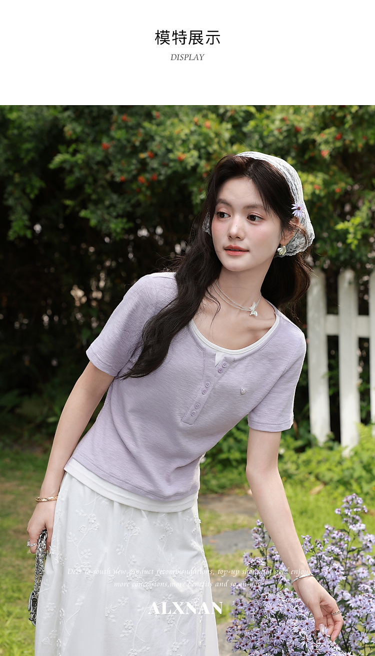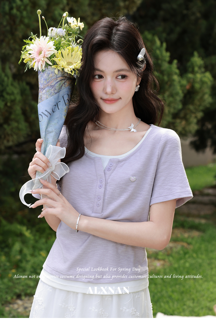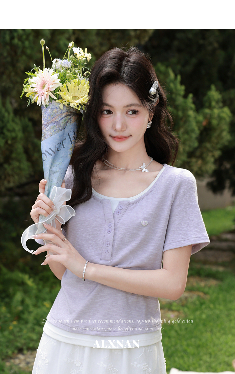 鹿向南【0331/20:00新品前1小时7折限量100件】紫色假两件短袖T恤