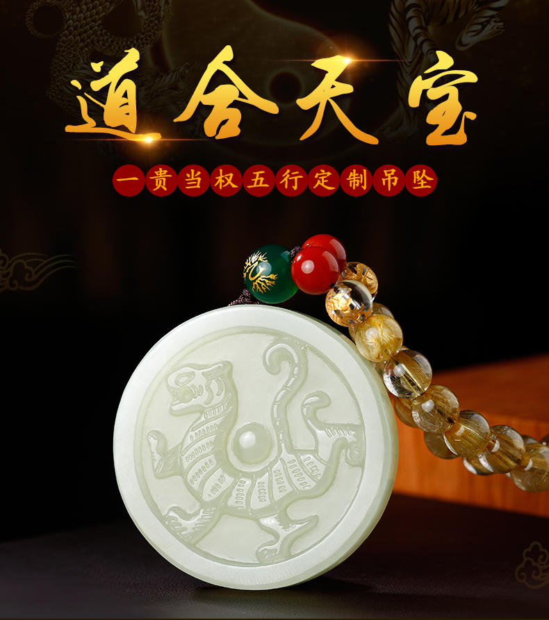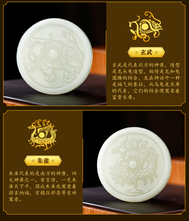慈元阁道合天宝一贵当权五行定制和田玉吊坠青龙白虎朱雀玄武