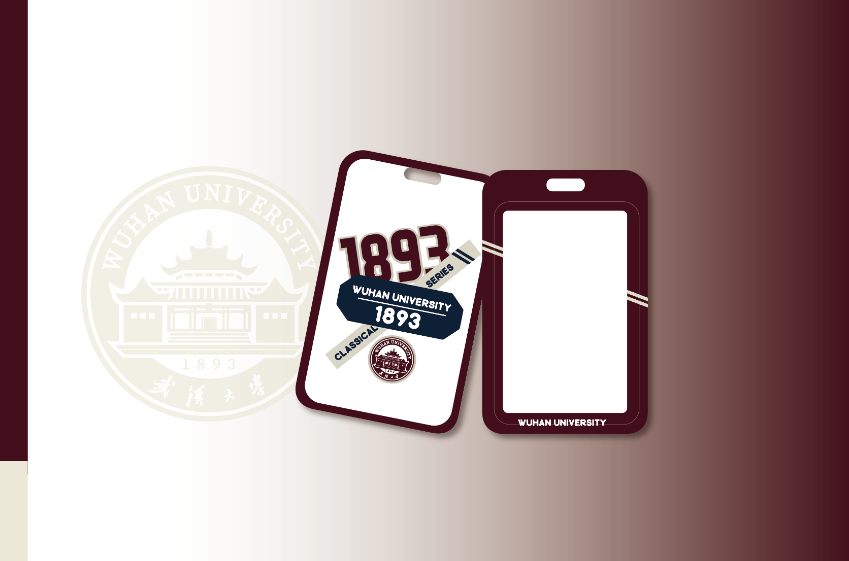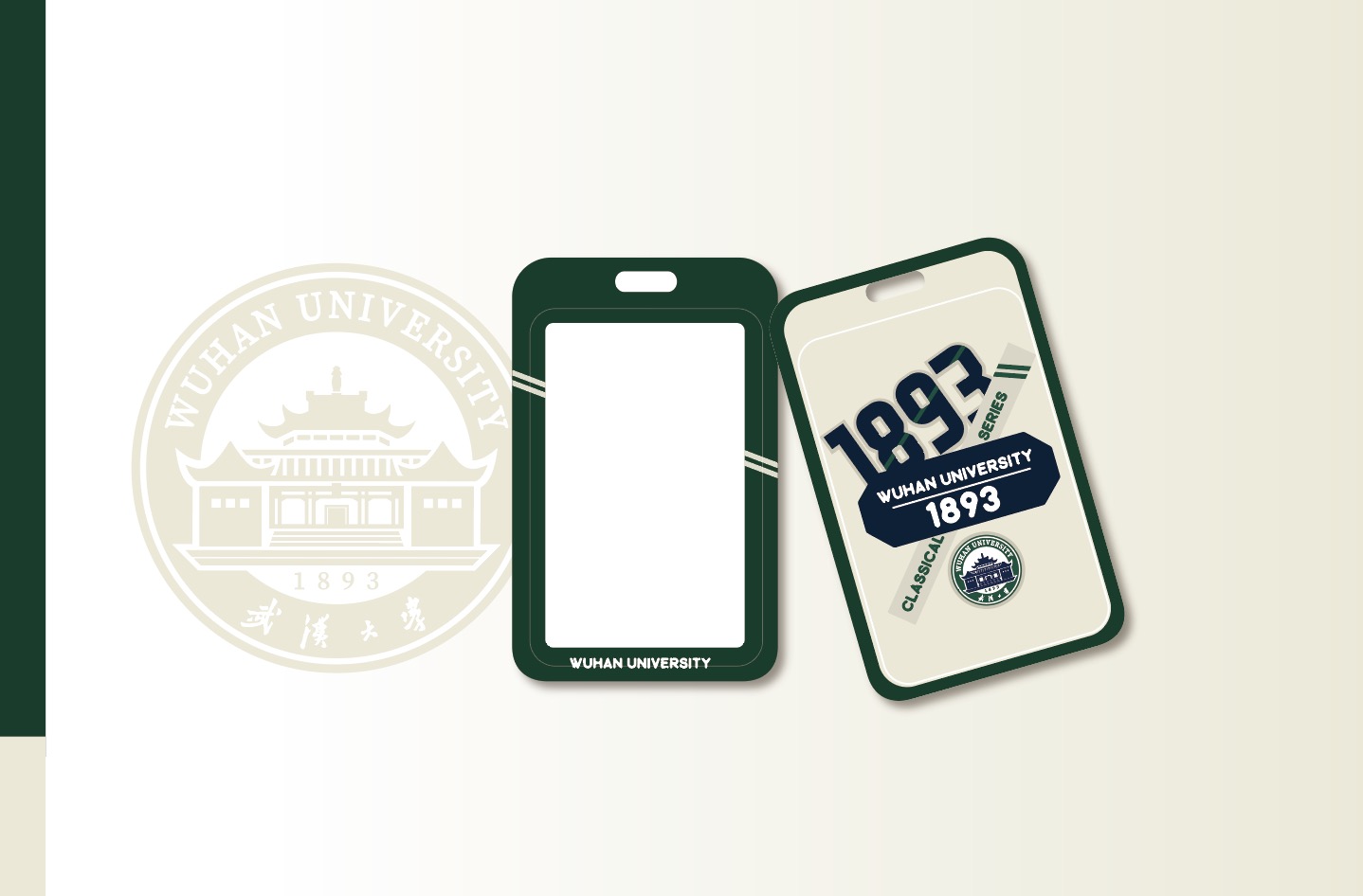1893系列卡套,以英文校名、校徽、建校年份为设计元素,经典耐用,珞珈绿和酒红色两色可选。