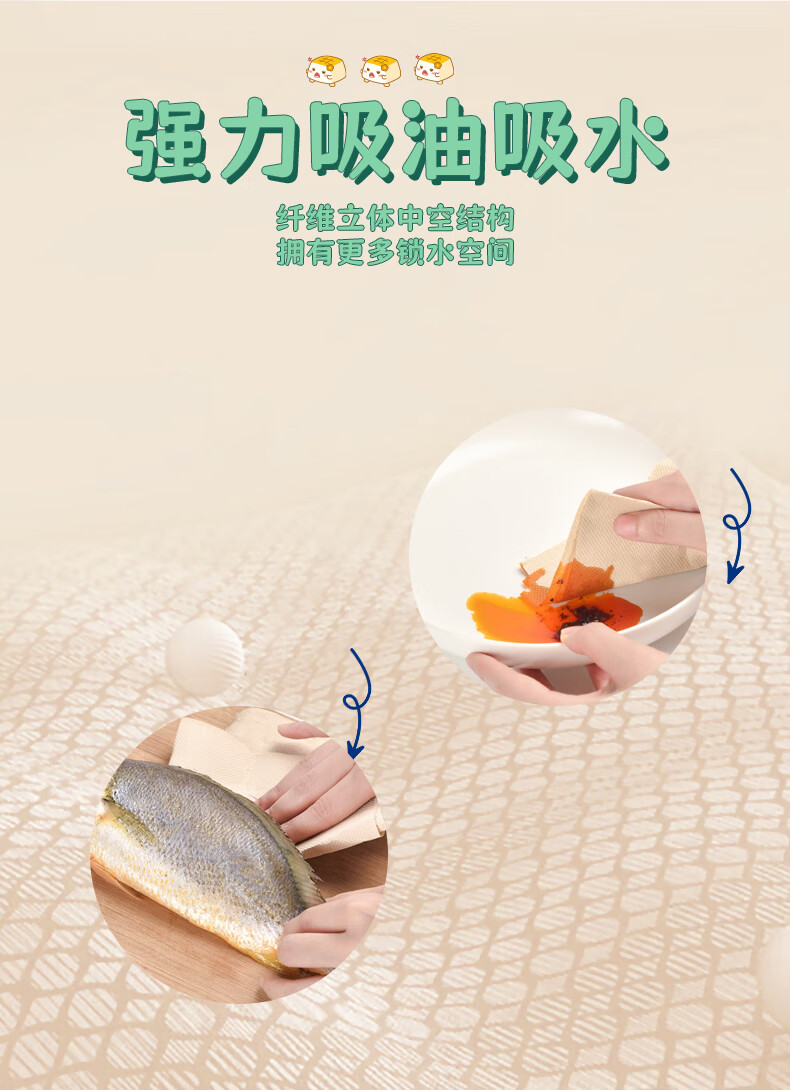 美穗吉家 厨房纸巾 原生竹浆70节×2卷×1提