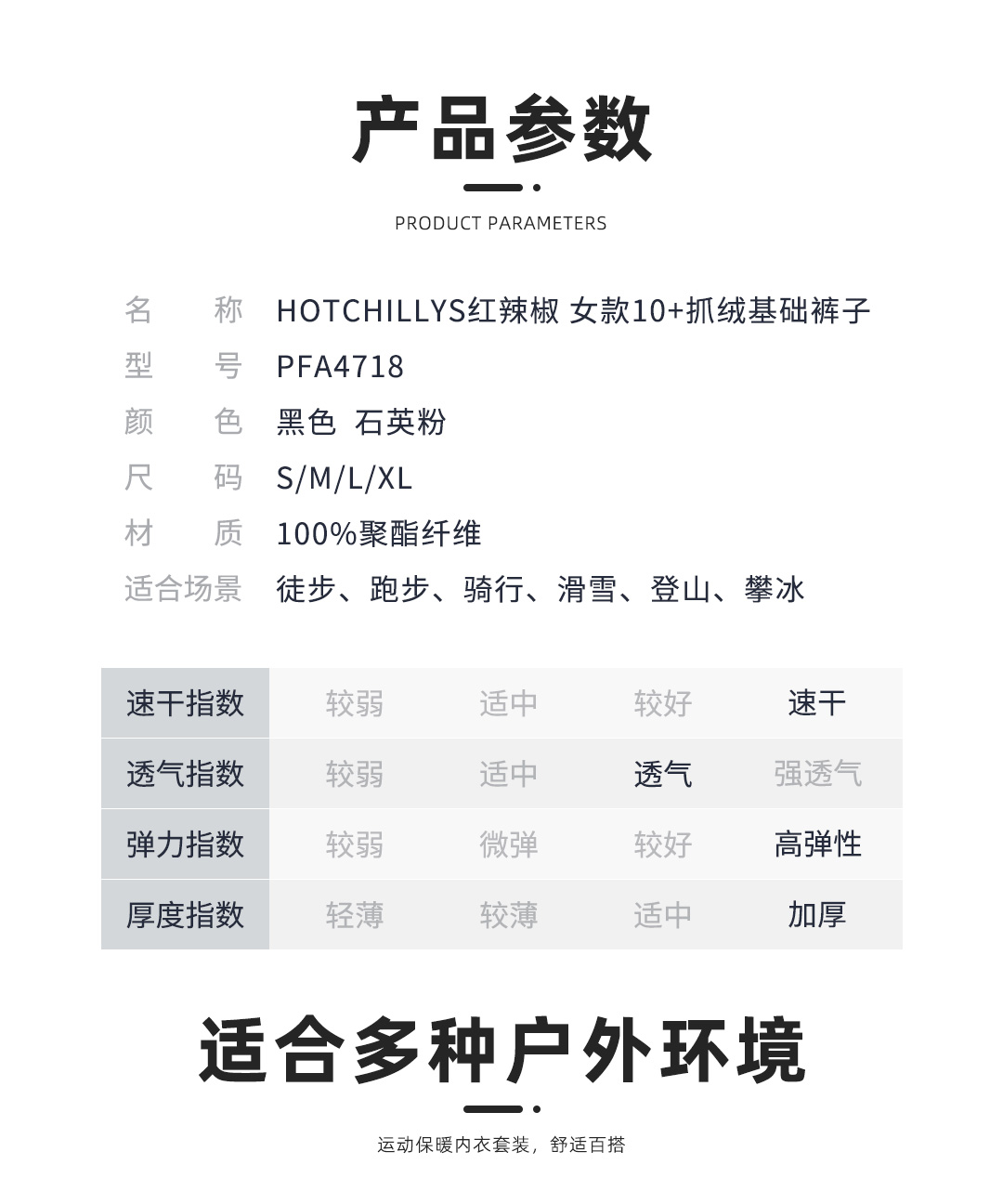 HOTCHILLYS热椒户外10+抓绒紧身裤女加厚打底保暖长裤HA4718