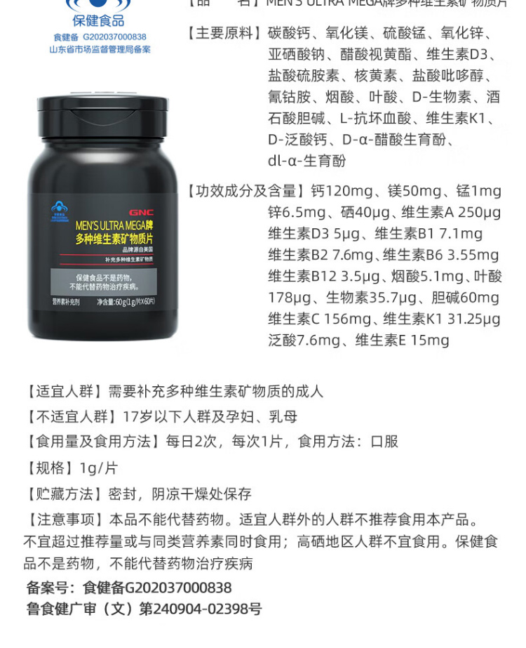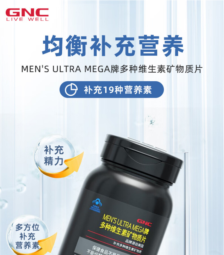 【79元选2件】GNC男士多种维生素矿物质片【有效期至26.12.17】