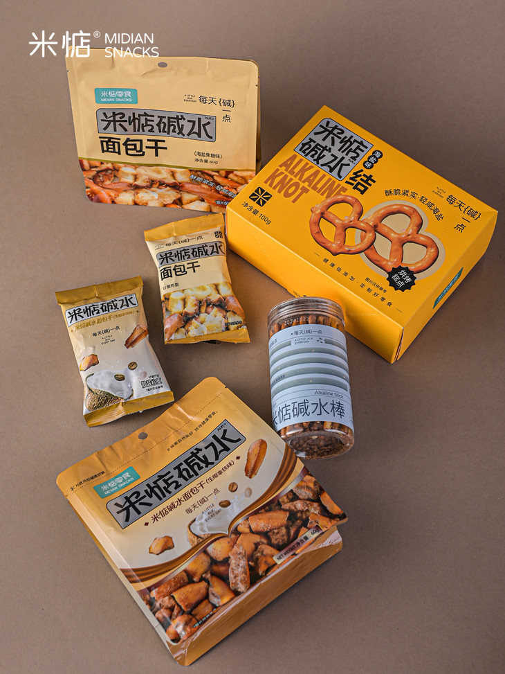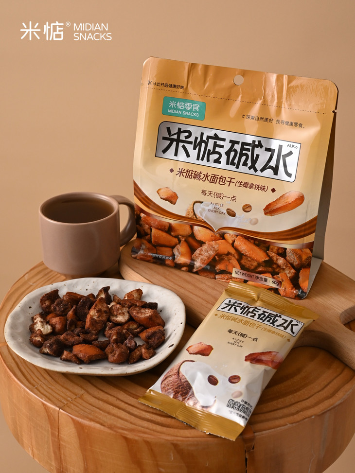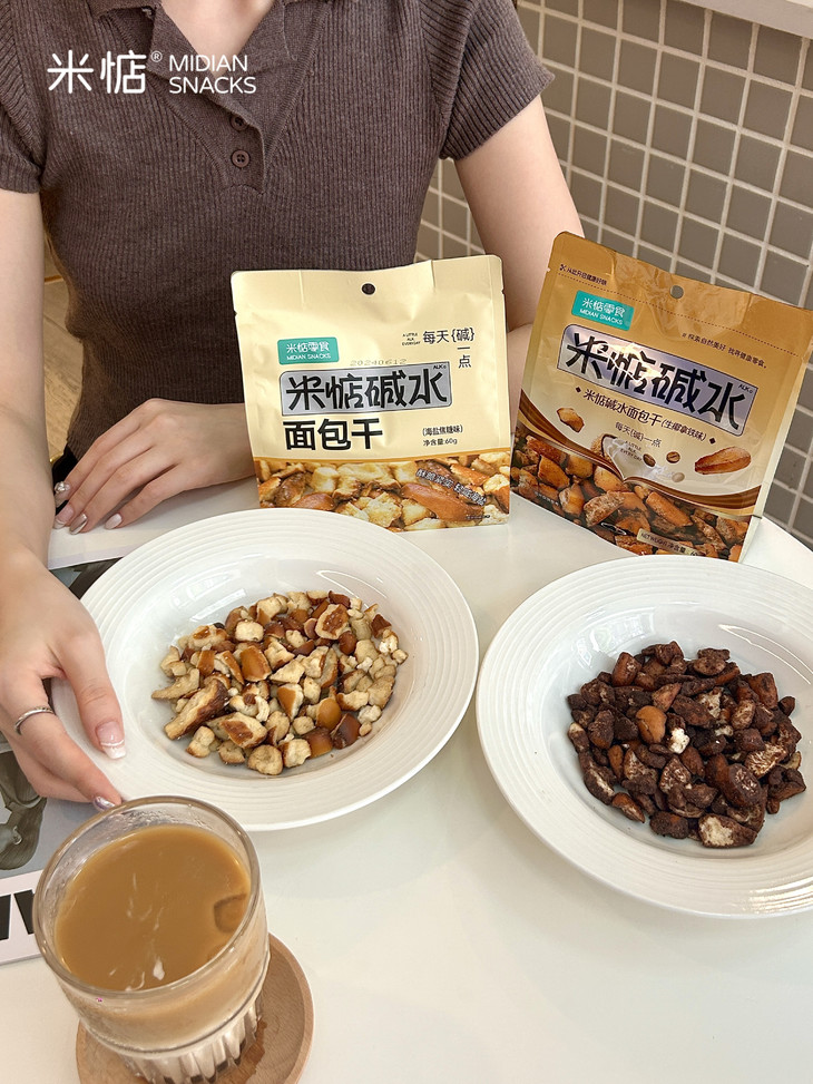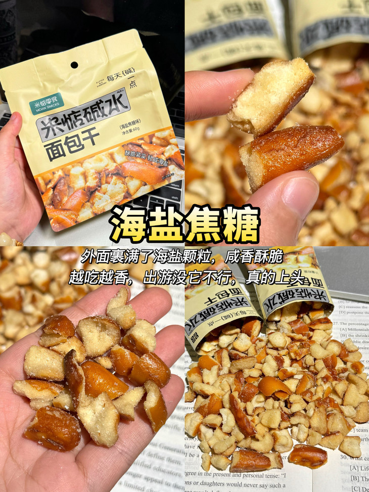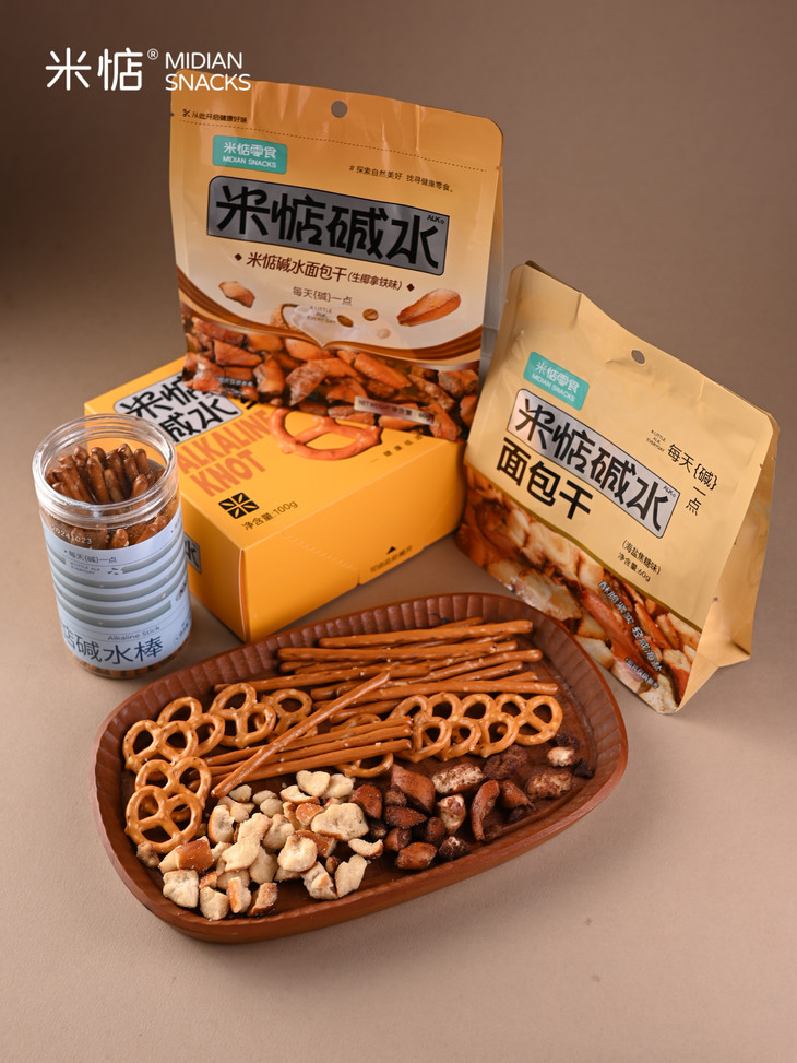 🔸海盐焦糖碱水面包干 焦糖奶香混着海盐味,每一粒都充满了酥脆咸甜 🔸生椰拿铁碱水面包干 浓醇咖啡香和碱水的碰撞,激发味蕾新体验 🔸碱水蝴蝶结 碱味+淡淡麦香+海盐颗粒,可爱蝴蝶造型 🔸海盐碱水棒 防暴食小木棍!吃起来嘎嘣脆!回味带着一丢咸香