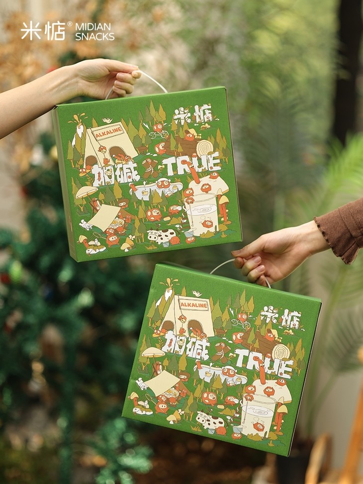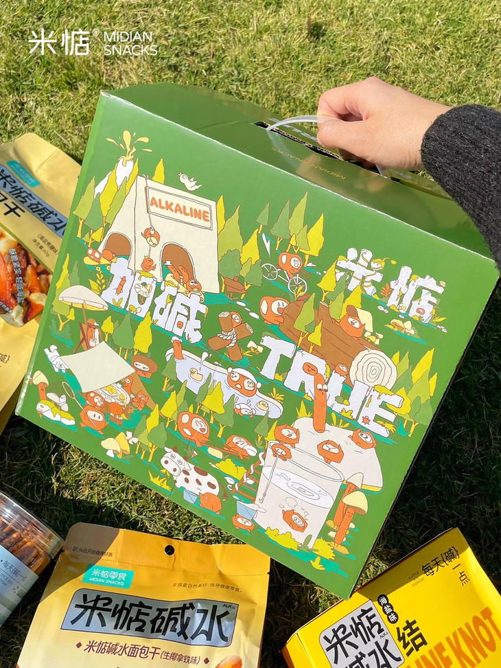 生机盎然的绿色代表春天也影射着健康理念✨ 面包干、碱水结、碱水棒则用活泼鲜明的橙色 “轻松愉快、嬉戏打闹、自由追逐“跃然纸上 仿佛亲临大自然让人感受到生命的力量与希望 而健康正是这份力量与希望的最好诠释🍃 过年不仅仅是家的温馨团聚,也是友谊的延续 踏出家门去见见因为忙碌而久违的朋友 微风不燥的冬日下不仅有春意盎然的景色☁️ 精心挑选的零食,最重要的是友人在侧的惬意轻松~