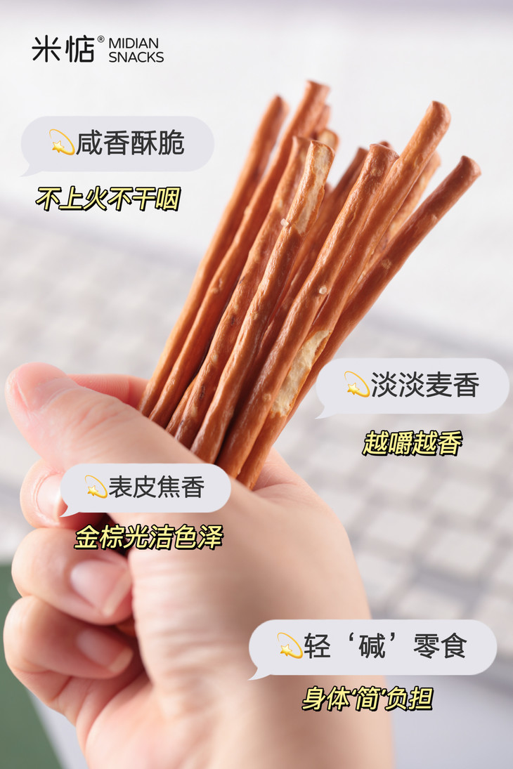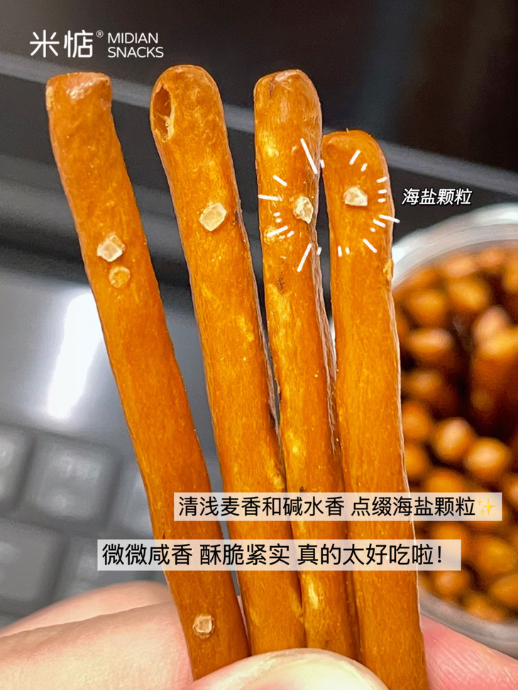 【海盐碱水棒】——追剧解馋必备 过年最喜欢做的事情就是窝着看剧📺 看剧时候的嘴巴总是容易感到寂寞 吃甜的容易腻味,吃香辣的担心热量 0香精0色素0防腐剂的防暴食小木棍 吃起来嘎嘣脆!回味带着一丢丢咸香 富含的碱性物质还能平衡人体的酸碱度🆚 还有助于缓解压力和焦虑,愉悦的咔滋声能带来放松感