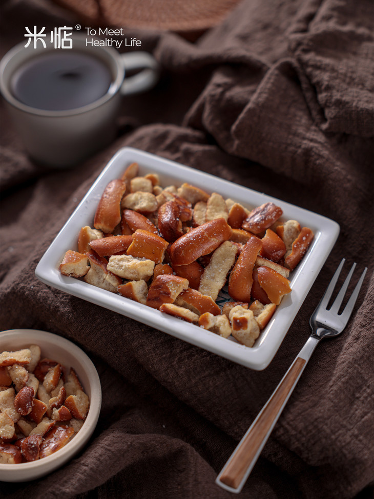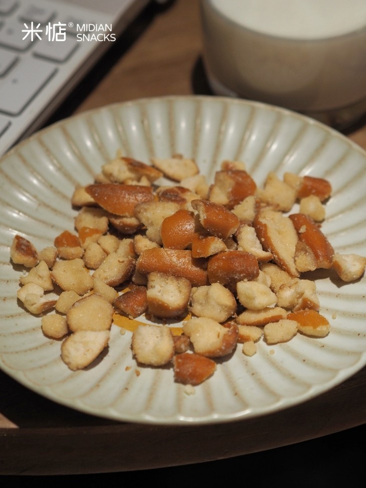 烘烤过后的面包干表面形成了一层金黄的酥脆外壳🥖 静置之后将其敲碎成不规格的面包块 每块面包干上面都裹满了深浅不一的美味秘方 就像吃mm豆一样,永远无法预测下一份惊喜🎁 能预测的只有它咸甜的浓香焦脆