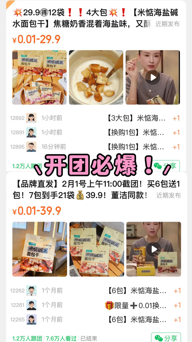 碱水面包干的魅力和数据真的是老生常谈💬 吃过的小伙伴看到活动直接闭眼入 也有新的小伙伴还在观望这强大的数据是真的吗? 作为碱水面包干的开创者,小惦带你一探究竟 全年无休的开团单品,复购和好评是无限增加 每一个发自内心的分享都是真情流露💕