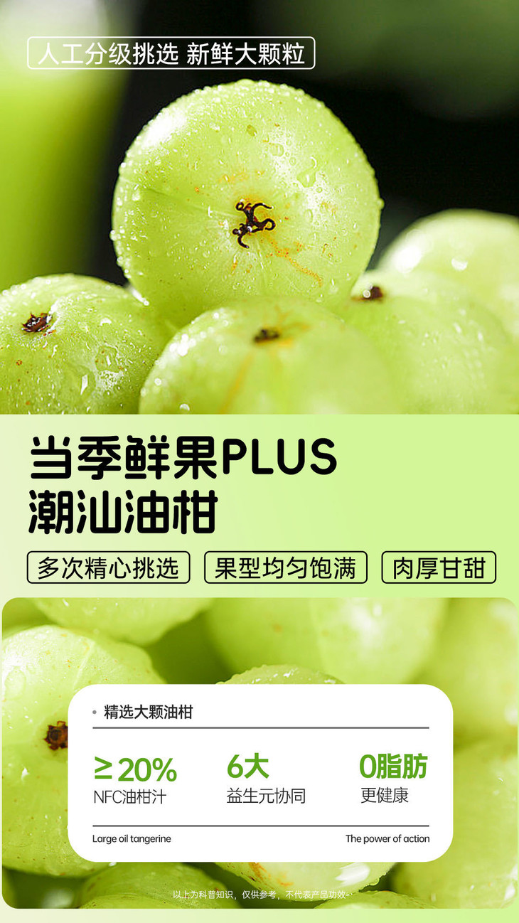 英贝健精选云南山林自然成熟油柑 逢10-12月遍寻约40万平方公里云南山林 在滇西/滇东南、澜沧江流域等选果 挑选大颗肉厚油柑果(当季鲜果PLUS) NFC鲜果生榨工艺更大程度保留油柑果纤维、单宁成分促进肠道蠕动