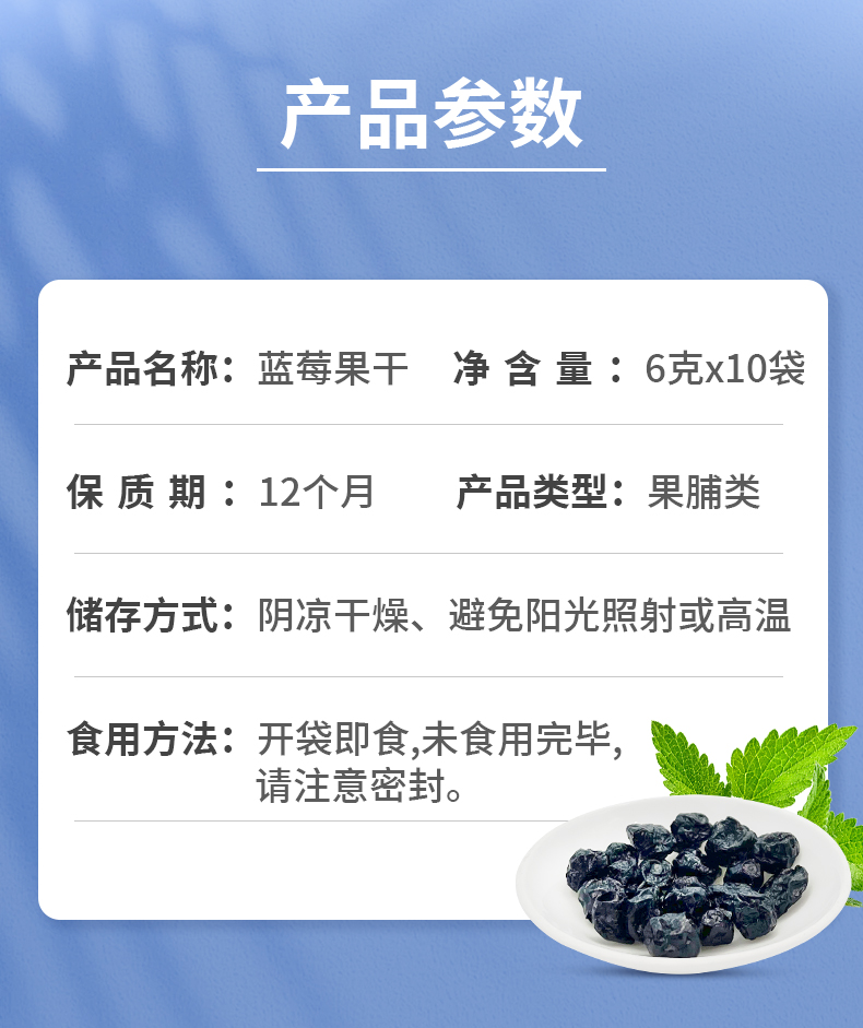 【蓝之奕】北川奕米蓝莓果干 保护视力休闲零食6克*10袋独立包装酸甜可口