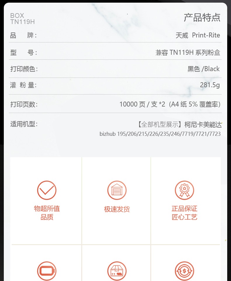 天威TN119H/TN117H粉盒 适用柯美bizhub 164/184/185e/7718 /7818复印机bizhub 205i 206 235 195 215 226 246 7719 7721