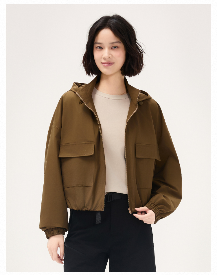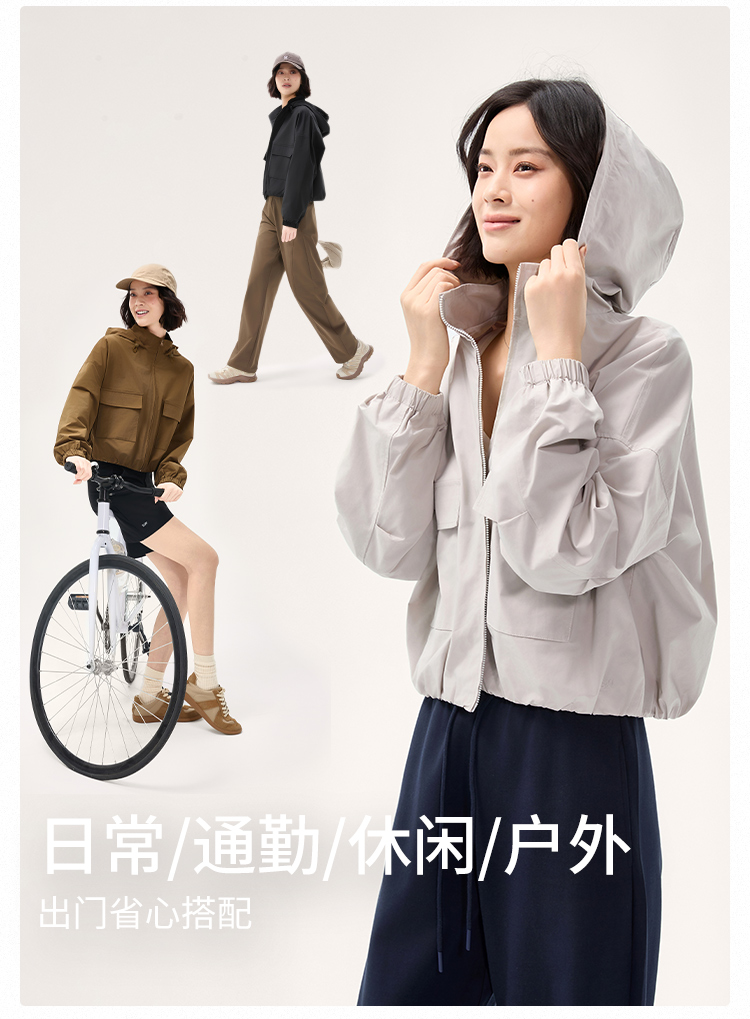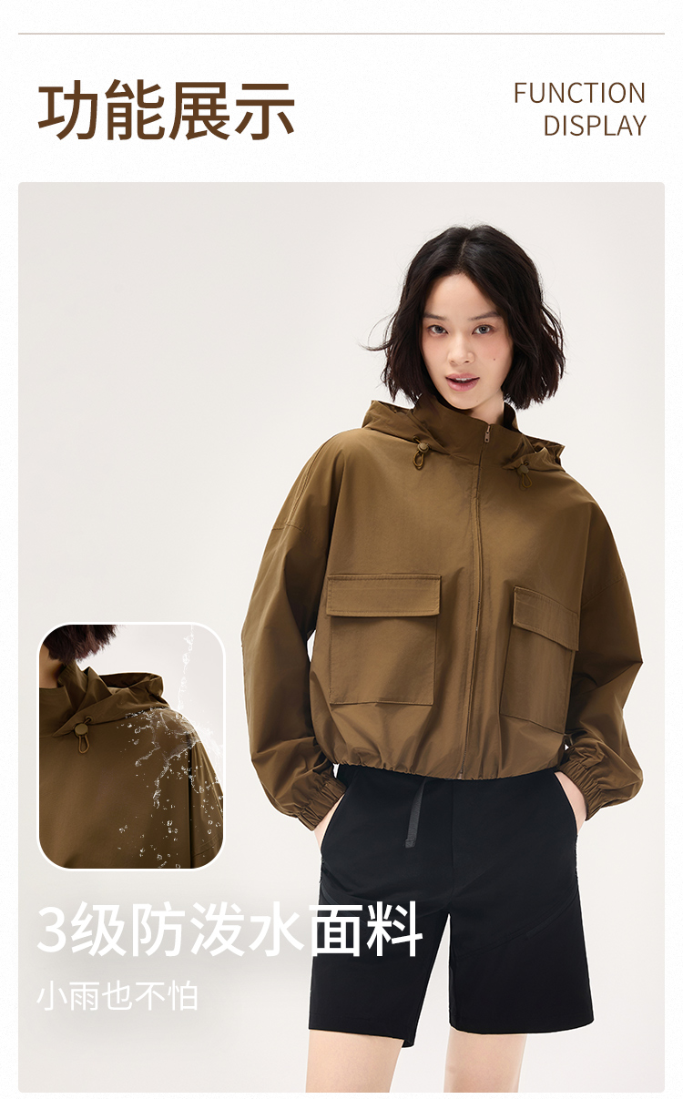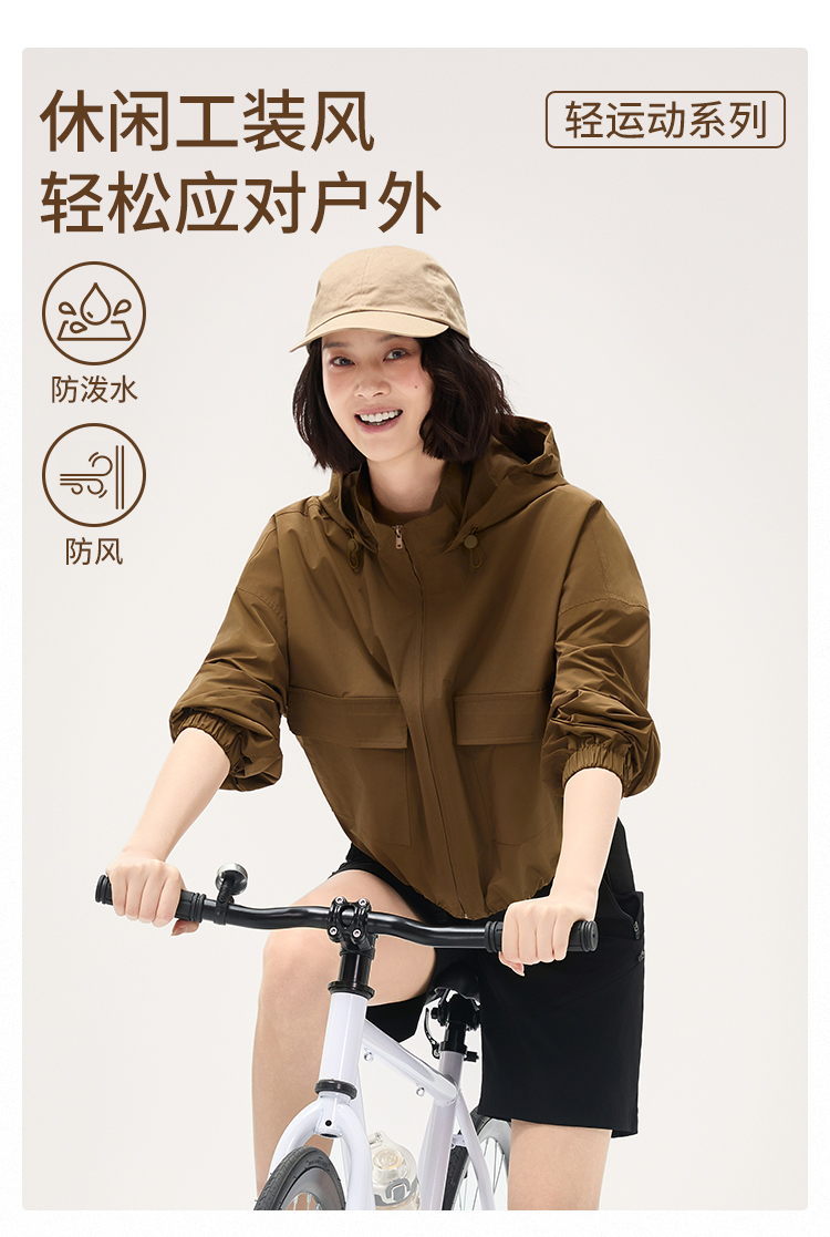【sw速惟】连帽运动休闲外套女复古防水夹克防风登山服1500