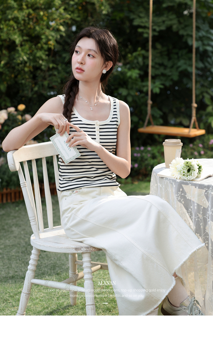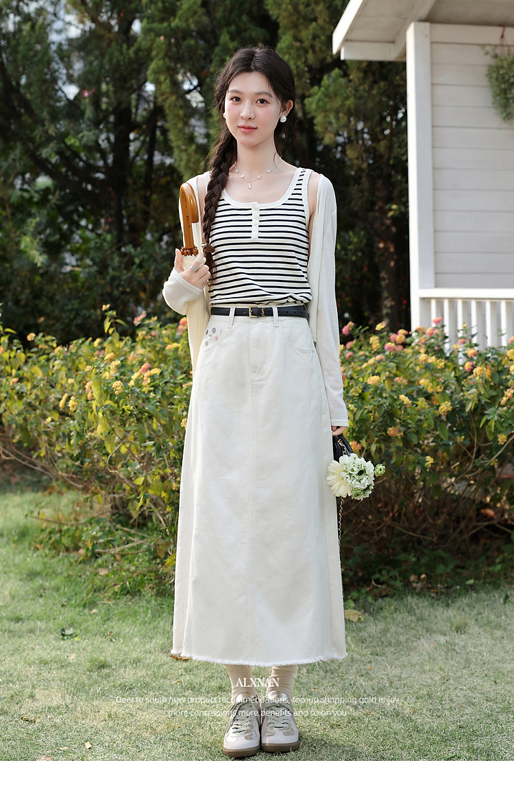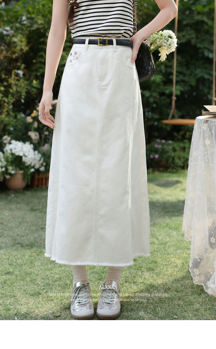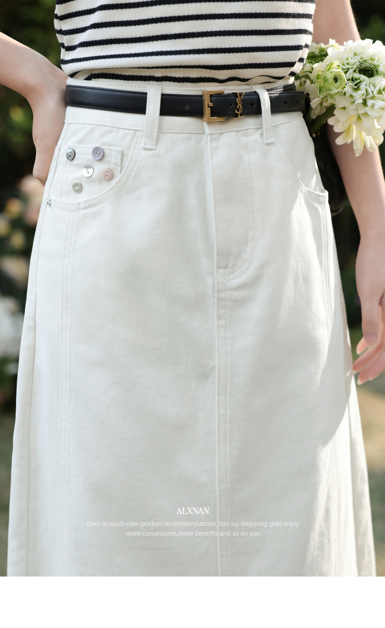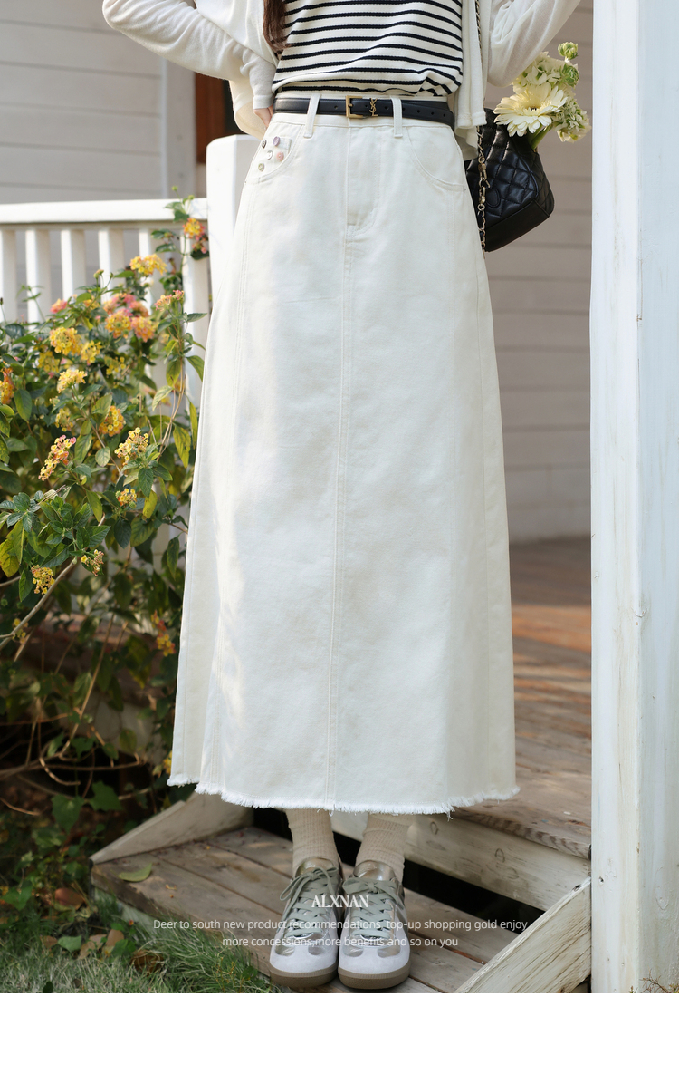 鹿向南「春日花漾」米白色半身裙女春新款时尚宽松高腰显瘦牛仔裙