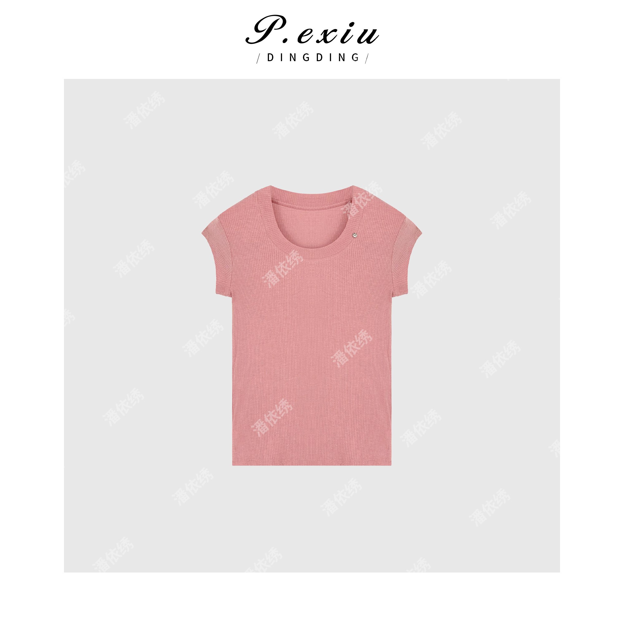 PanYiXiu/潘依绣天丝醋酸 修身U领螺纹糖果色针织上衣 W-62077