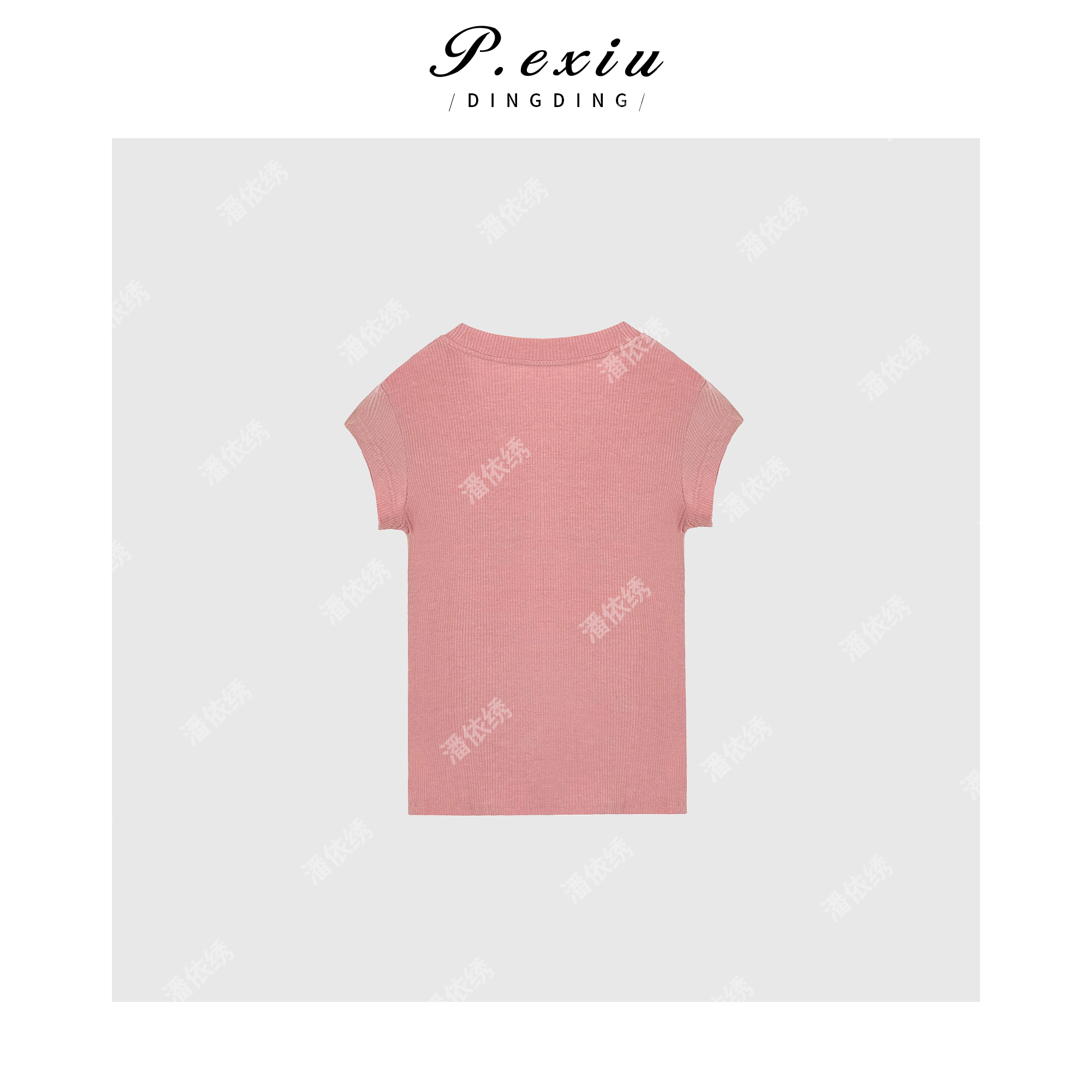 03-4潘依绣丁丁宠粉PanYiXiu/潘依绣氧气感人丝韩版撞色条纹针织短袖上衣 ZZ0556
