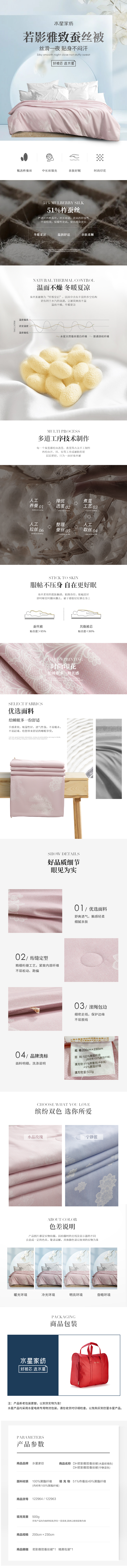 水星家纺 DH若影雅致蚕丝被(水晶玫瑰色)
