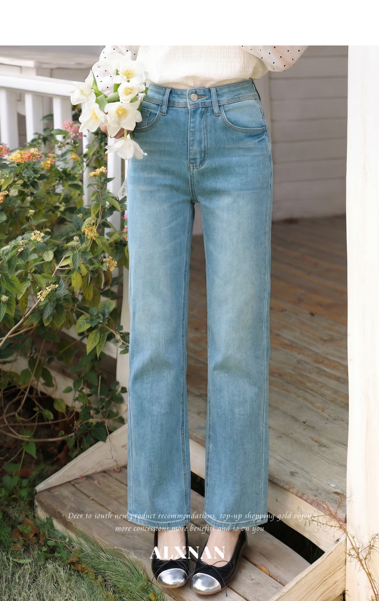 鹿向南「海盐苏打」复古高腰蓝色直筒牛仔裤女春季小个子显瘦长裤